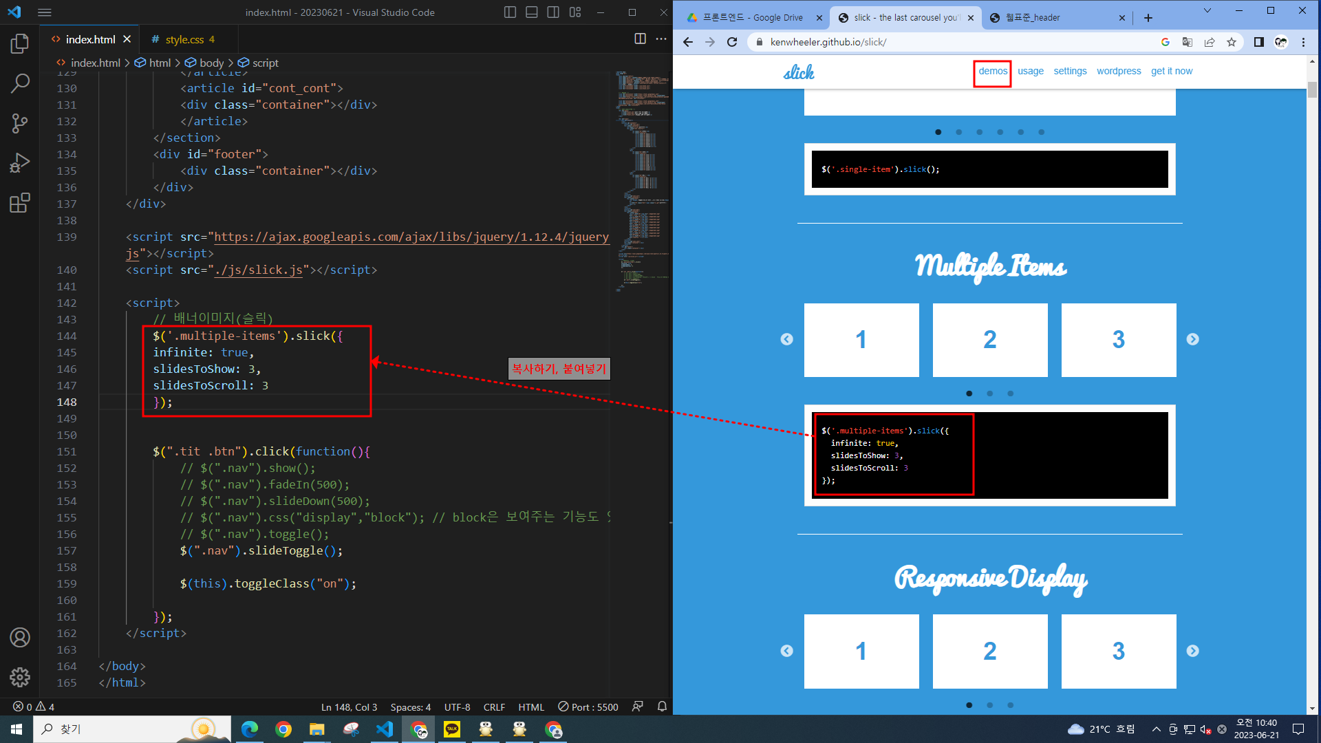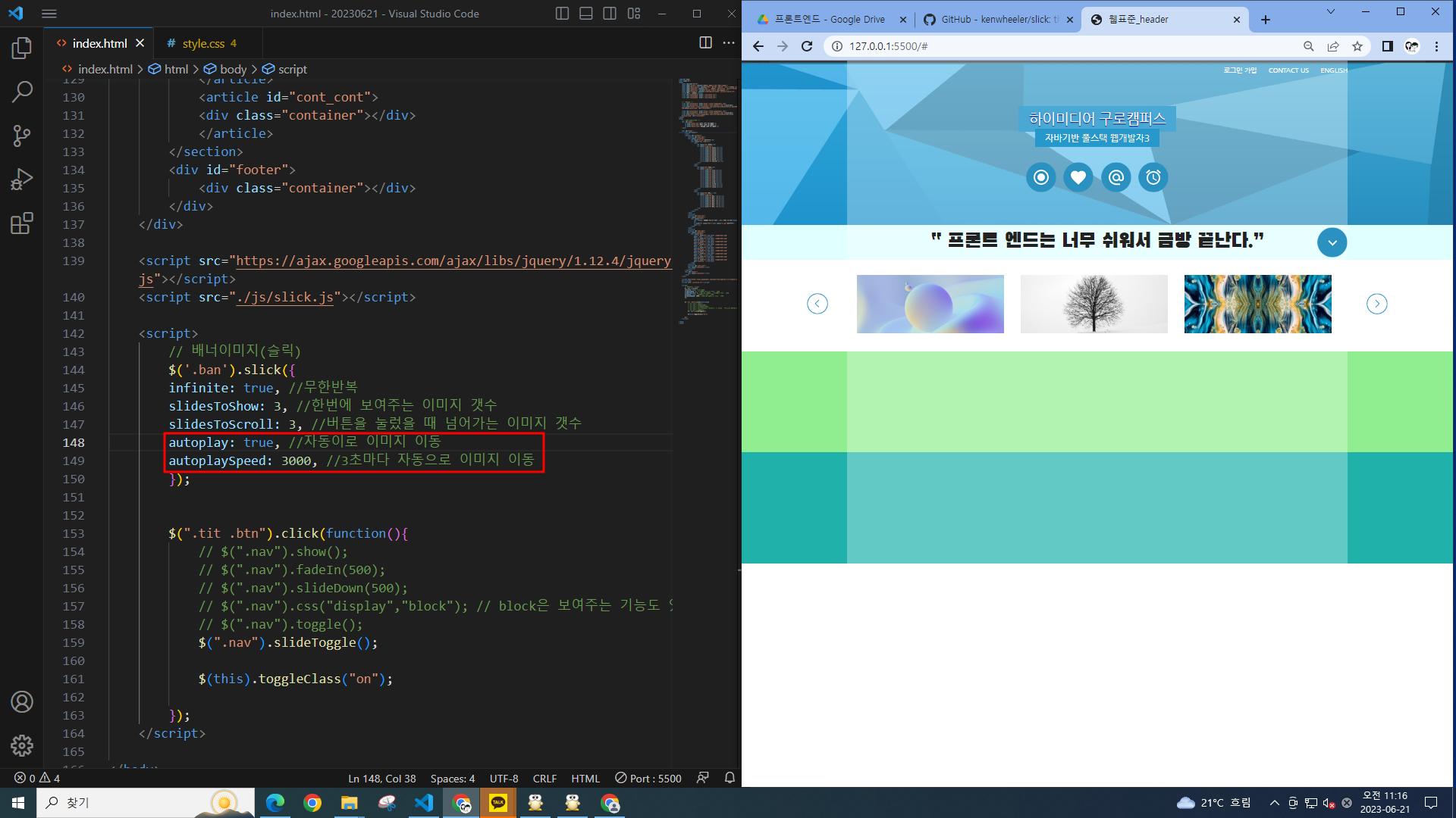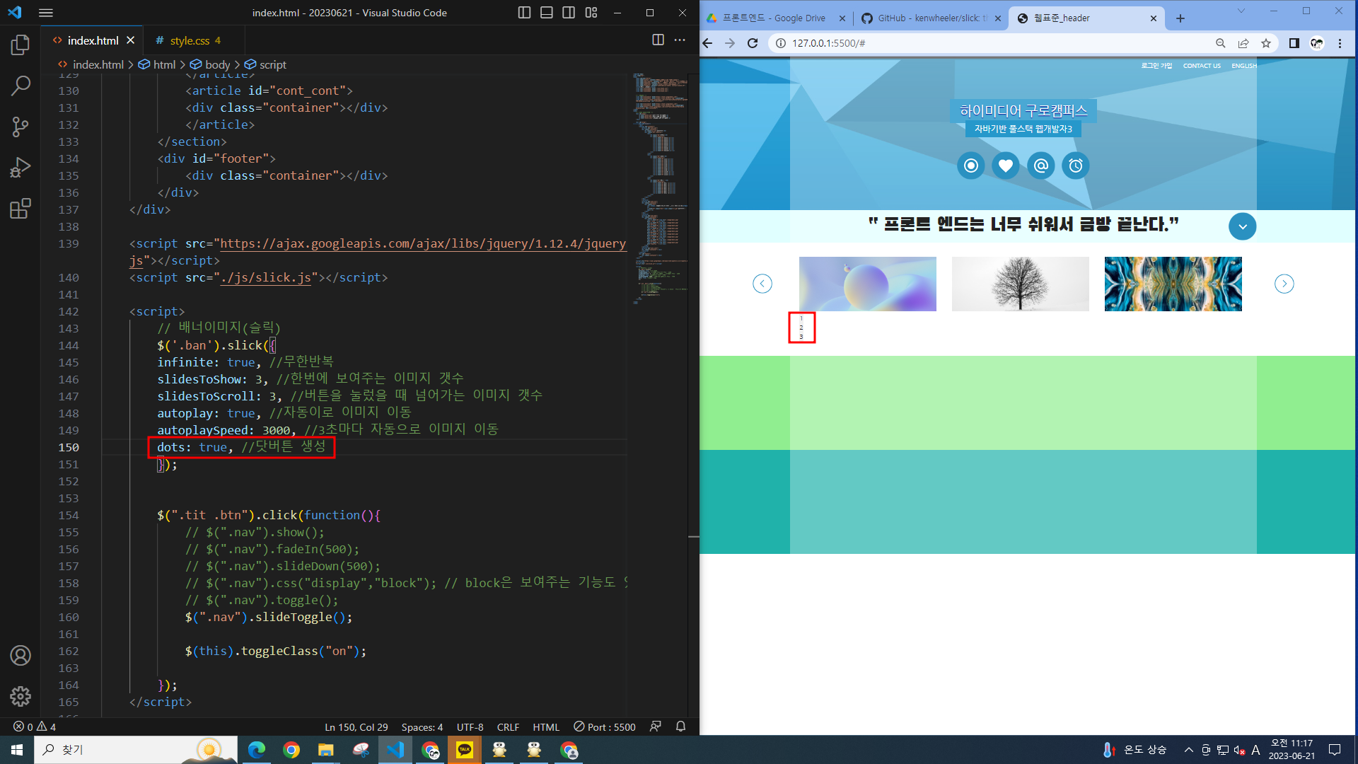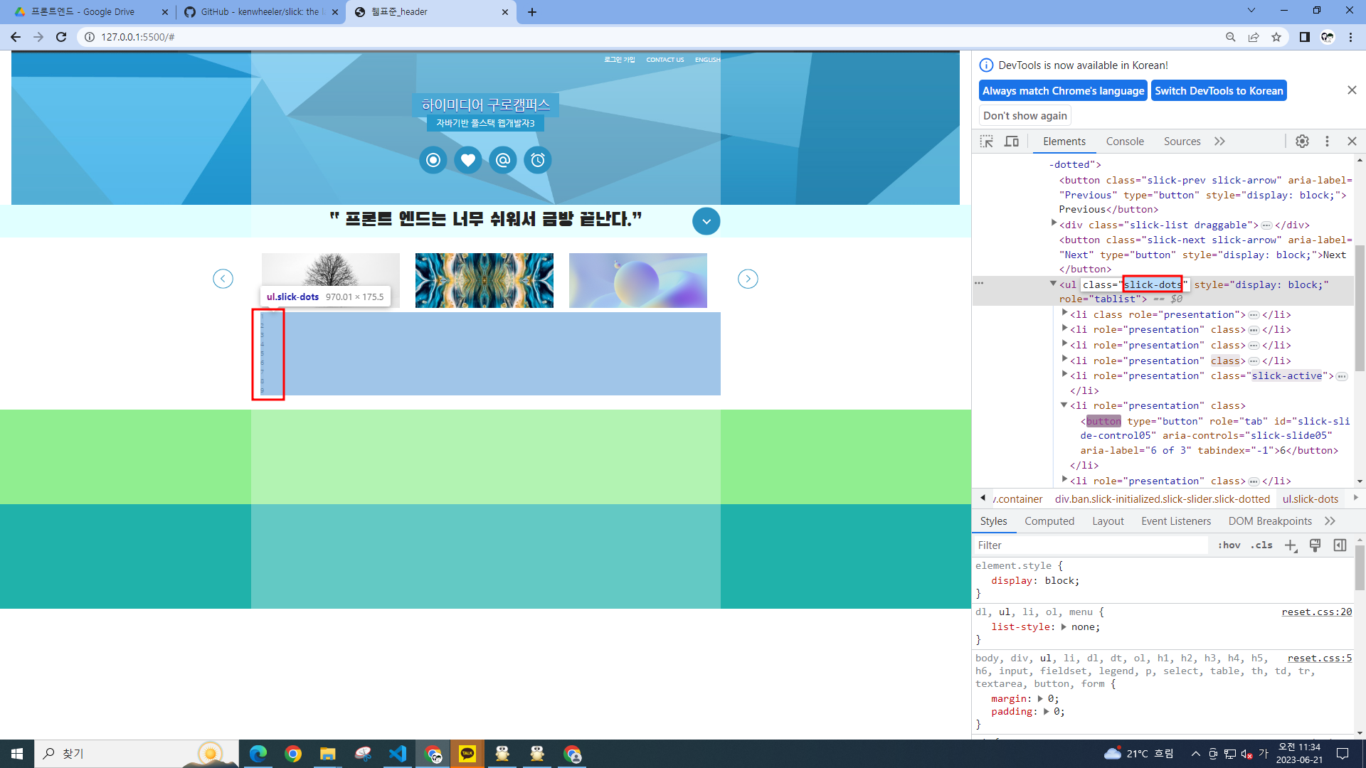 비주얼 스튜디오 코드 42 _ slick, dots, autoplay
