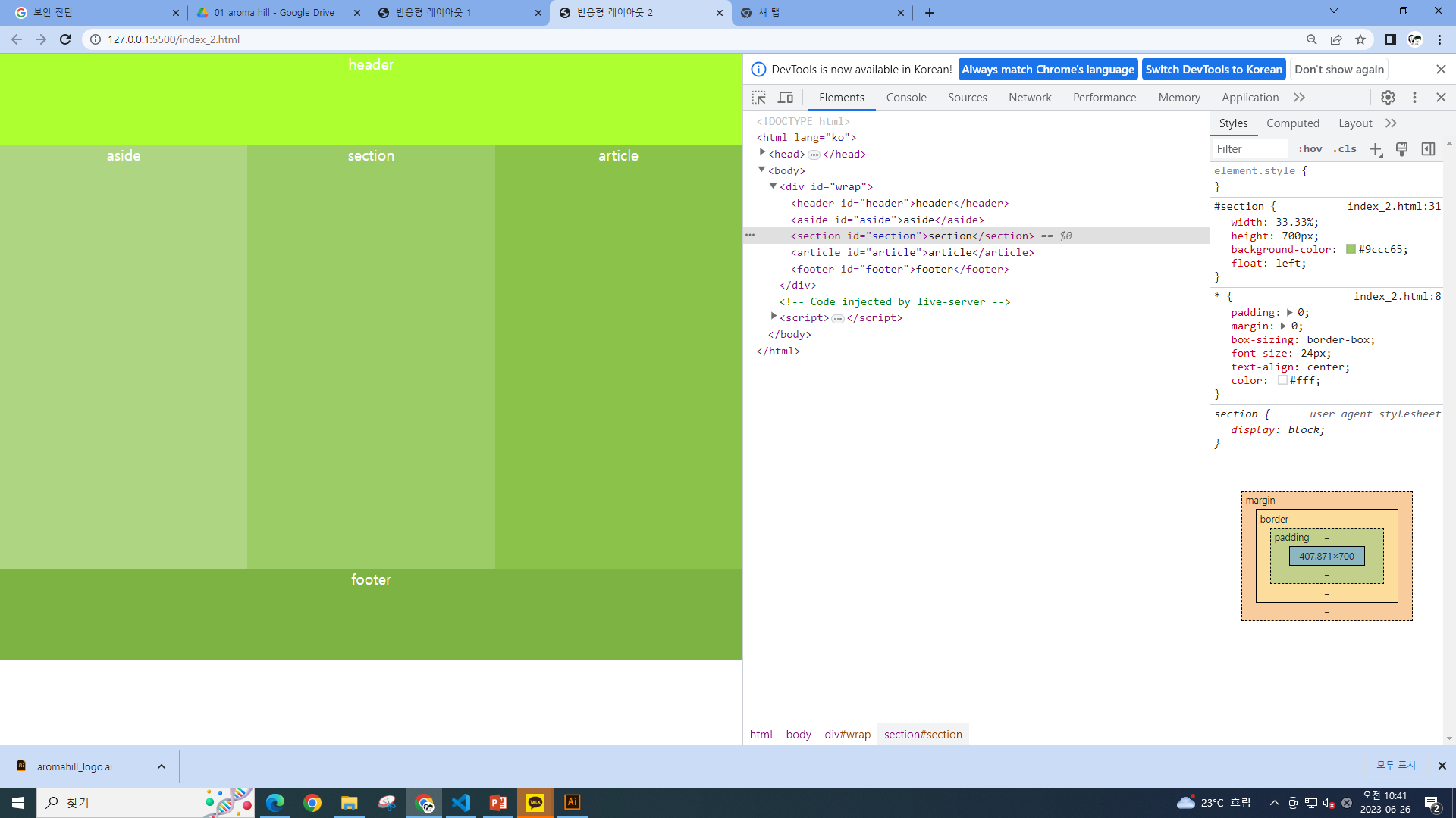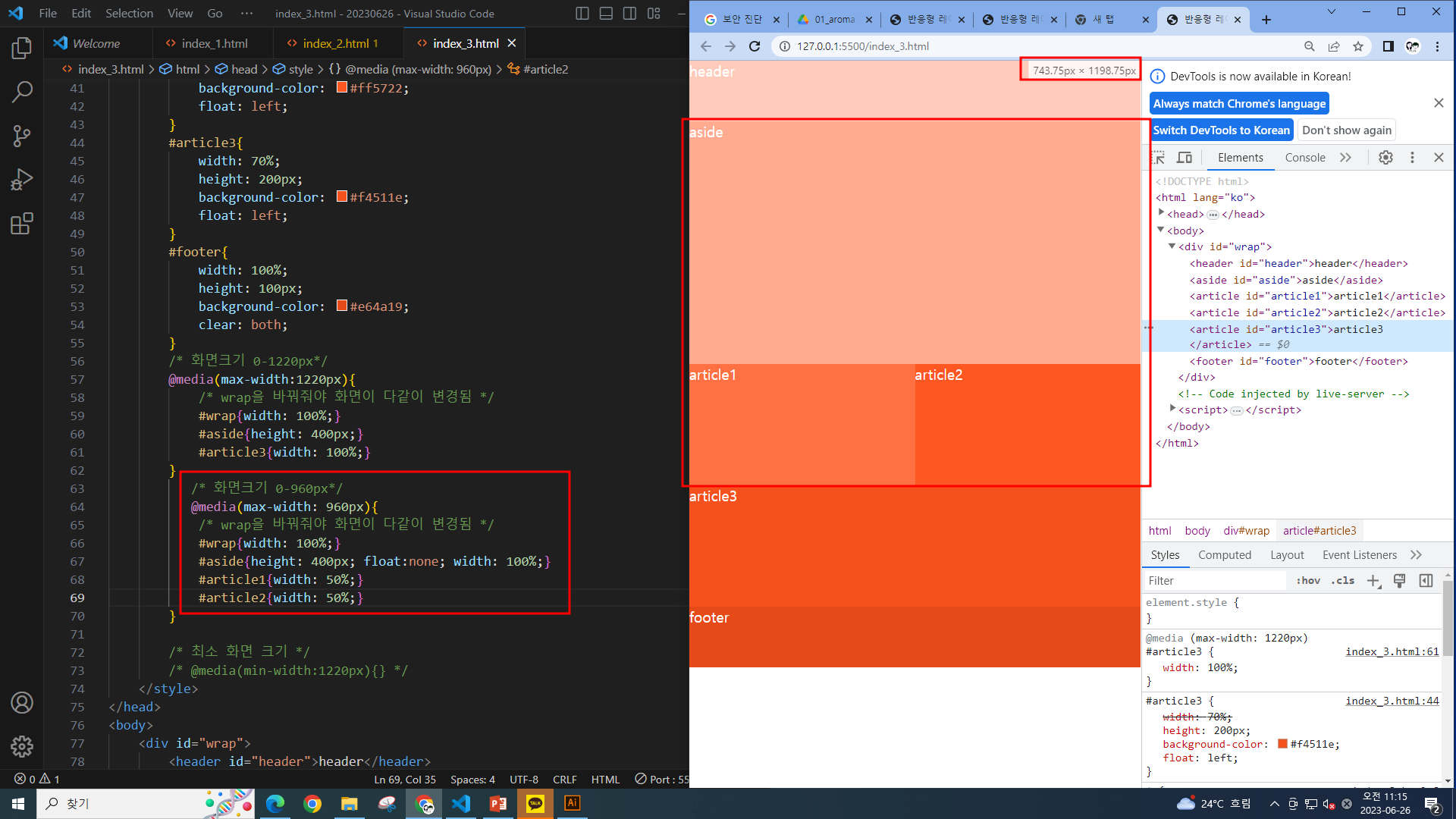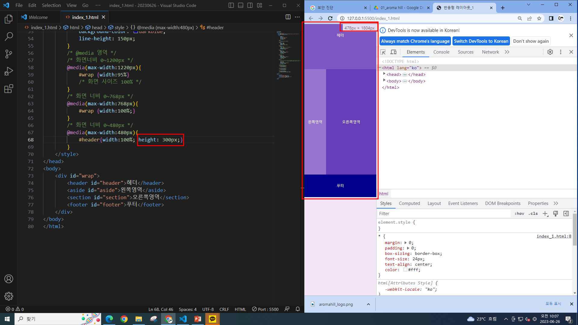 비주얼 스튜디오 코드 47_ 반응형 레이아웃