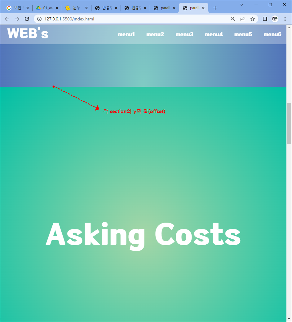 menu1을 클릭했을 때 section1이 나올 수 있도록 링크를 걸어준다.
