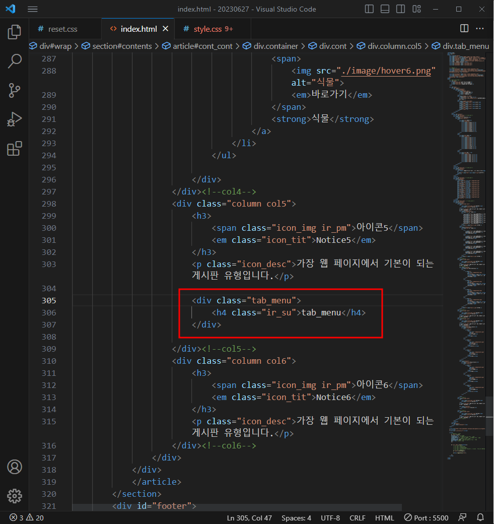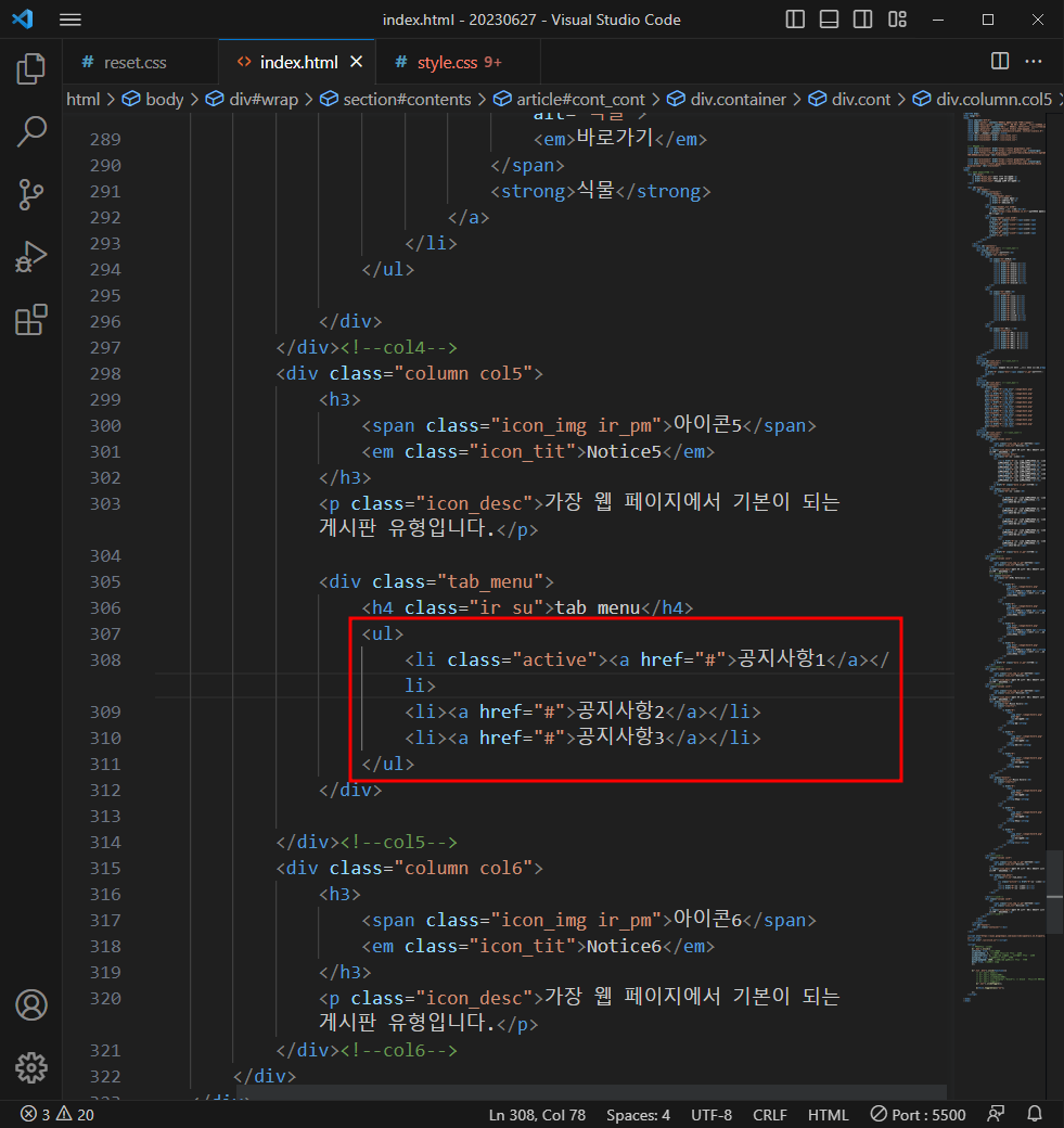 비주얼 스튜디오 코드 49_ 웹표준) 탭메뉴