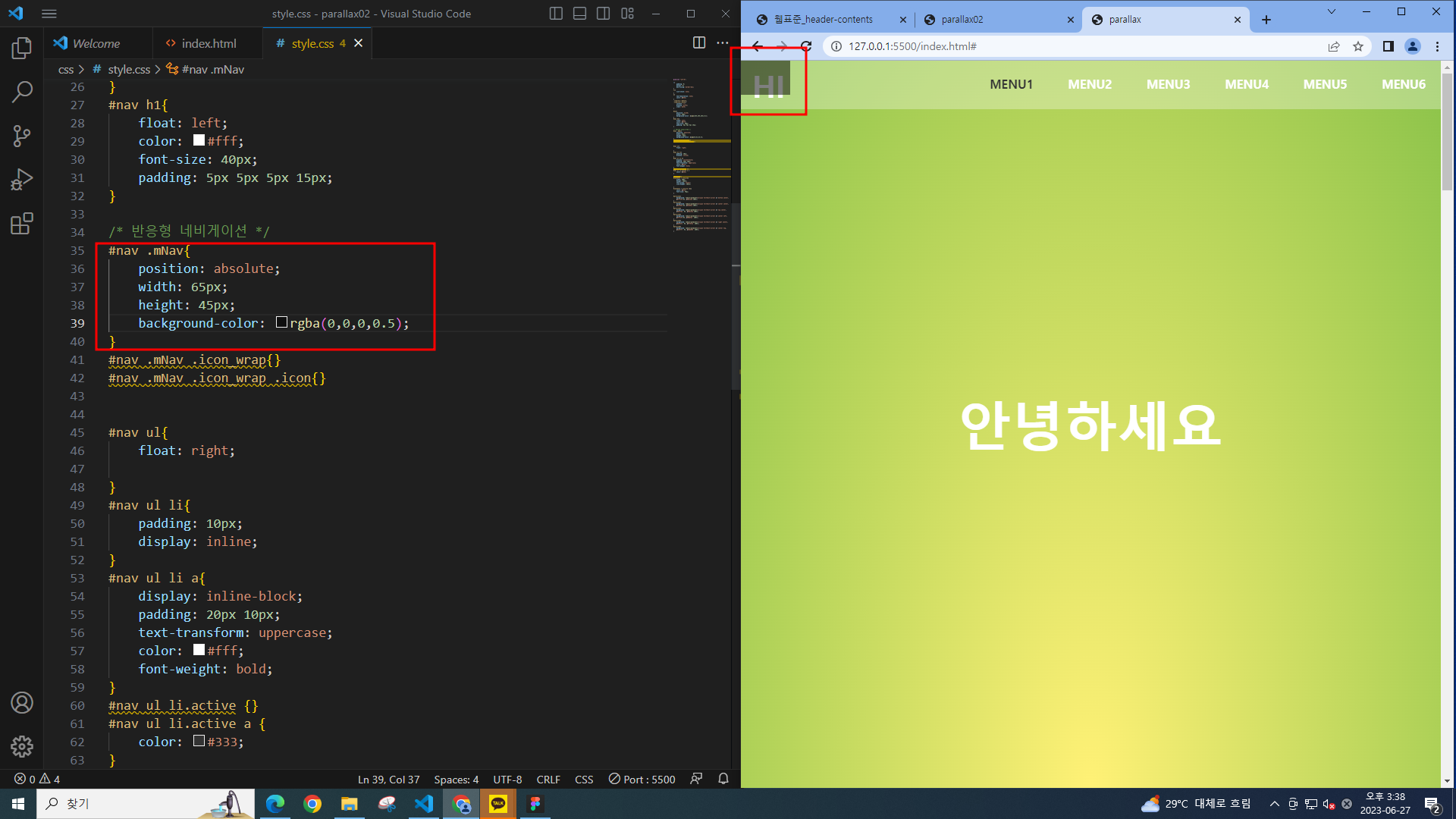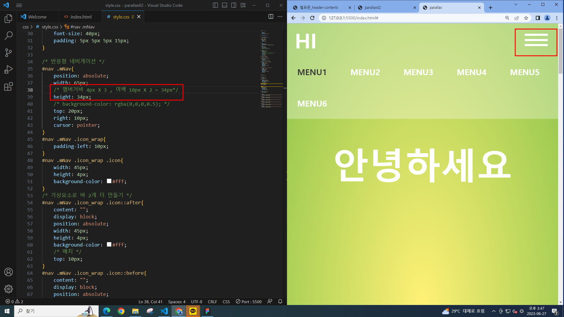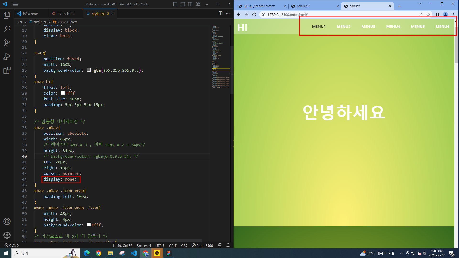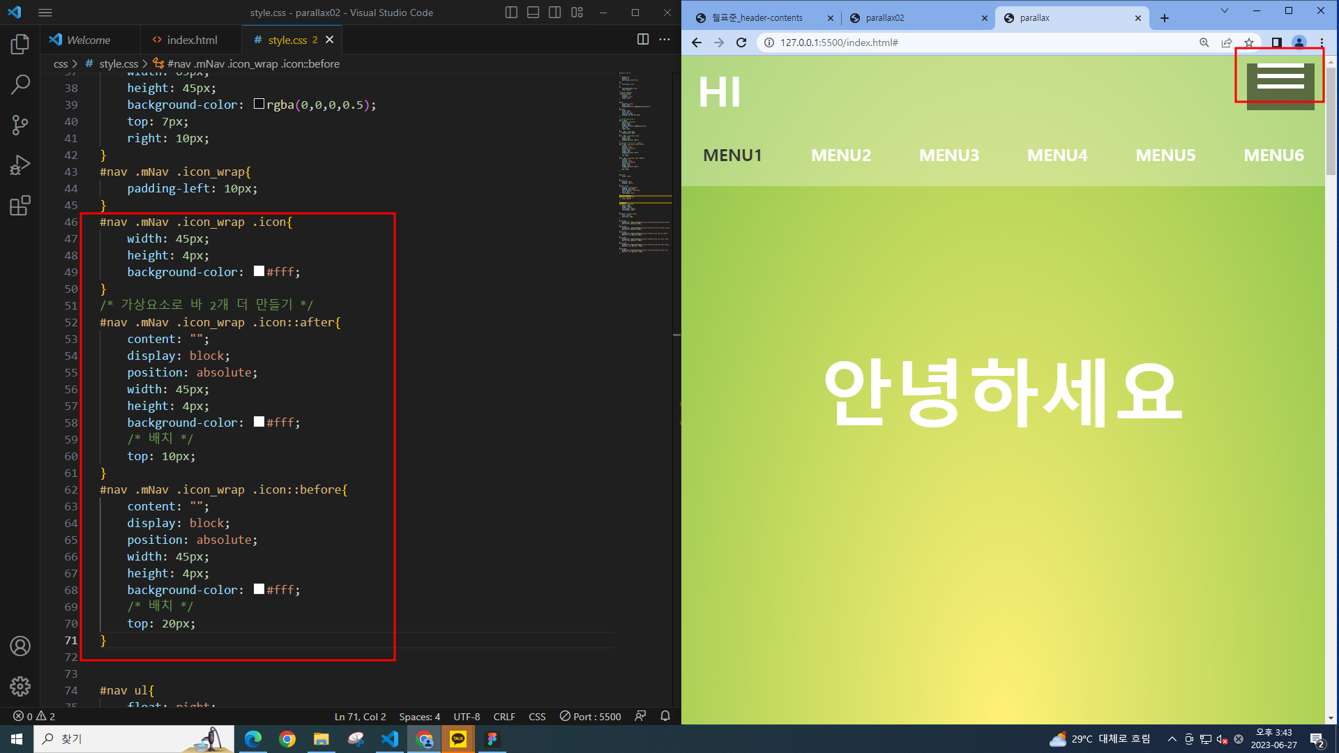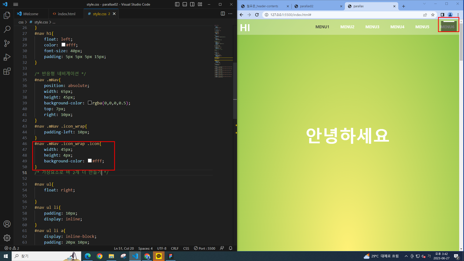 패럴럭스에서 했던 코딩파일에 이어서 작업한다.
