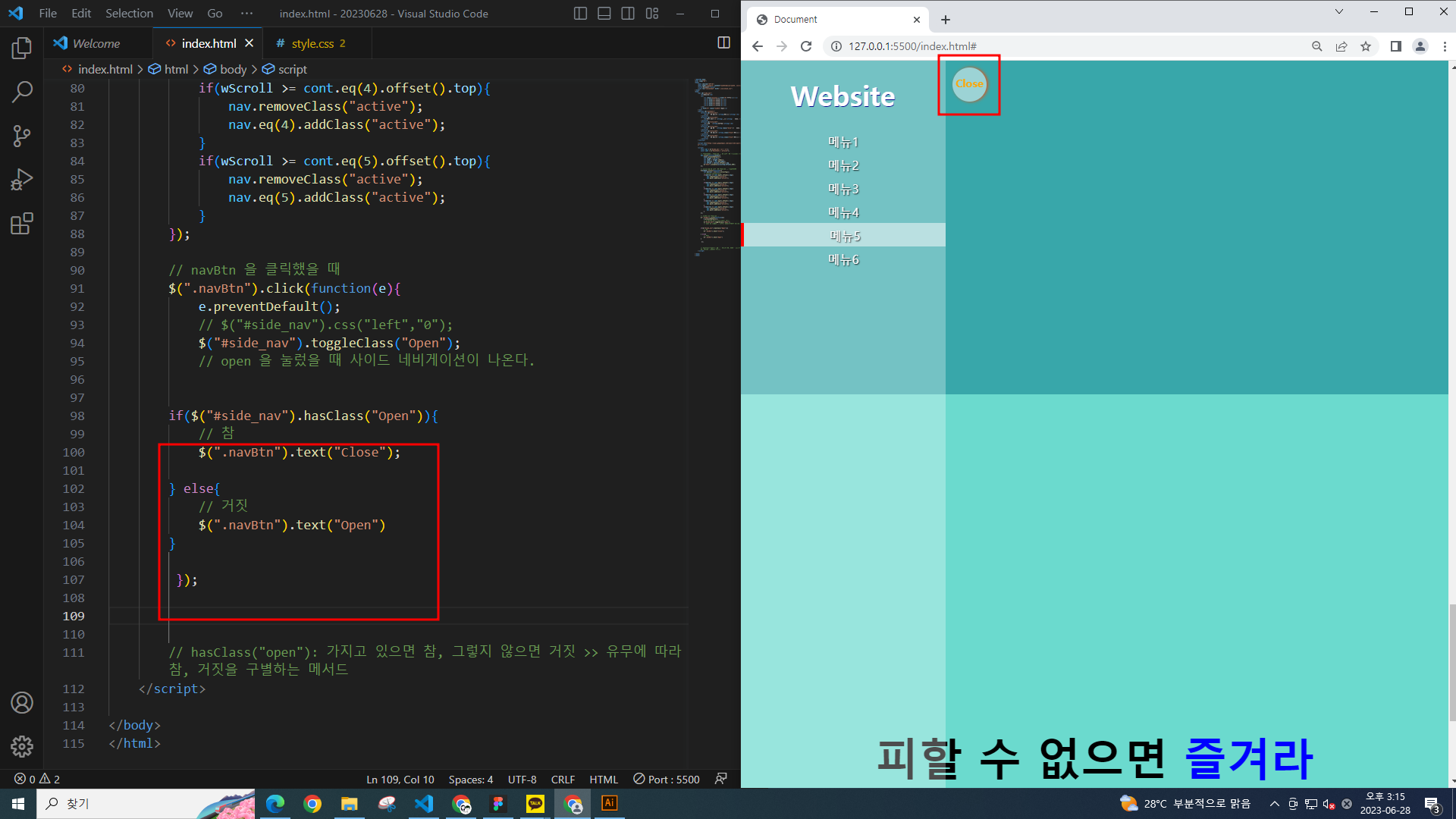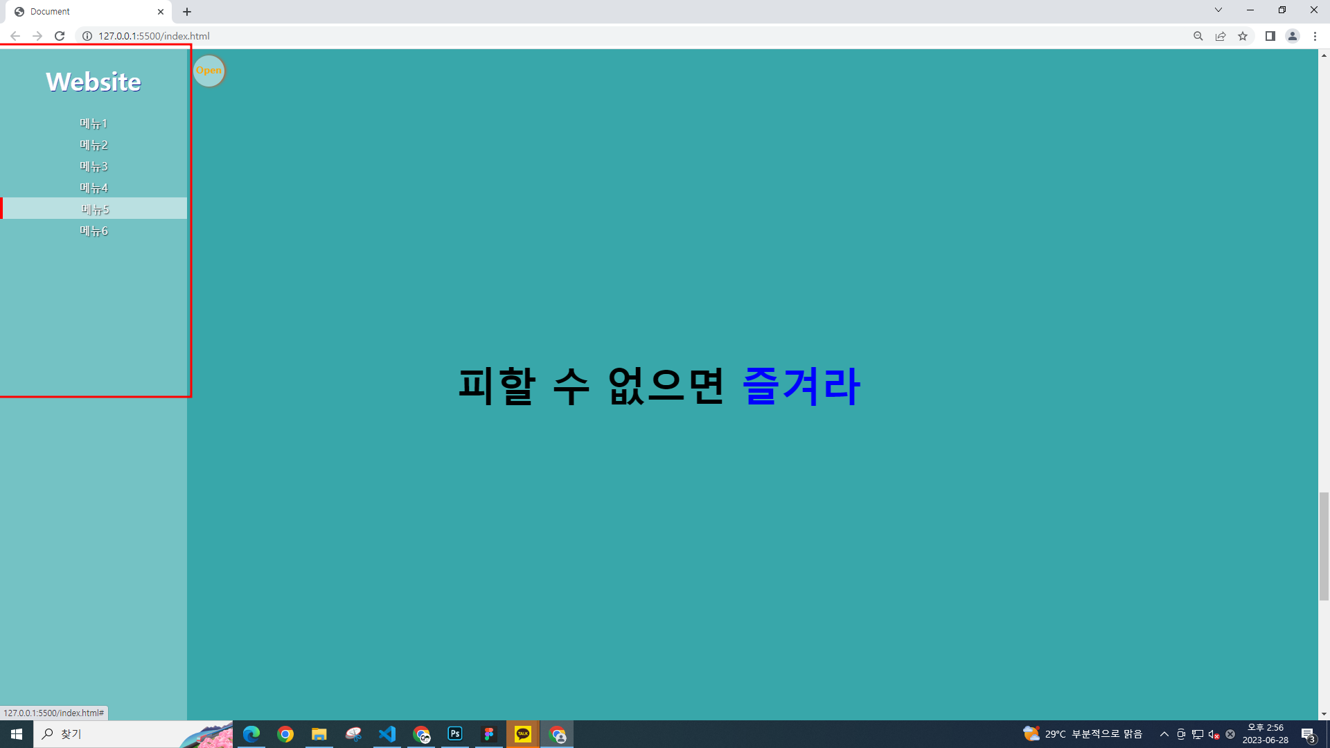 open 클래스와 nav가 만나게 해야한다.