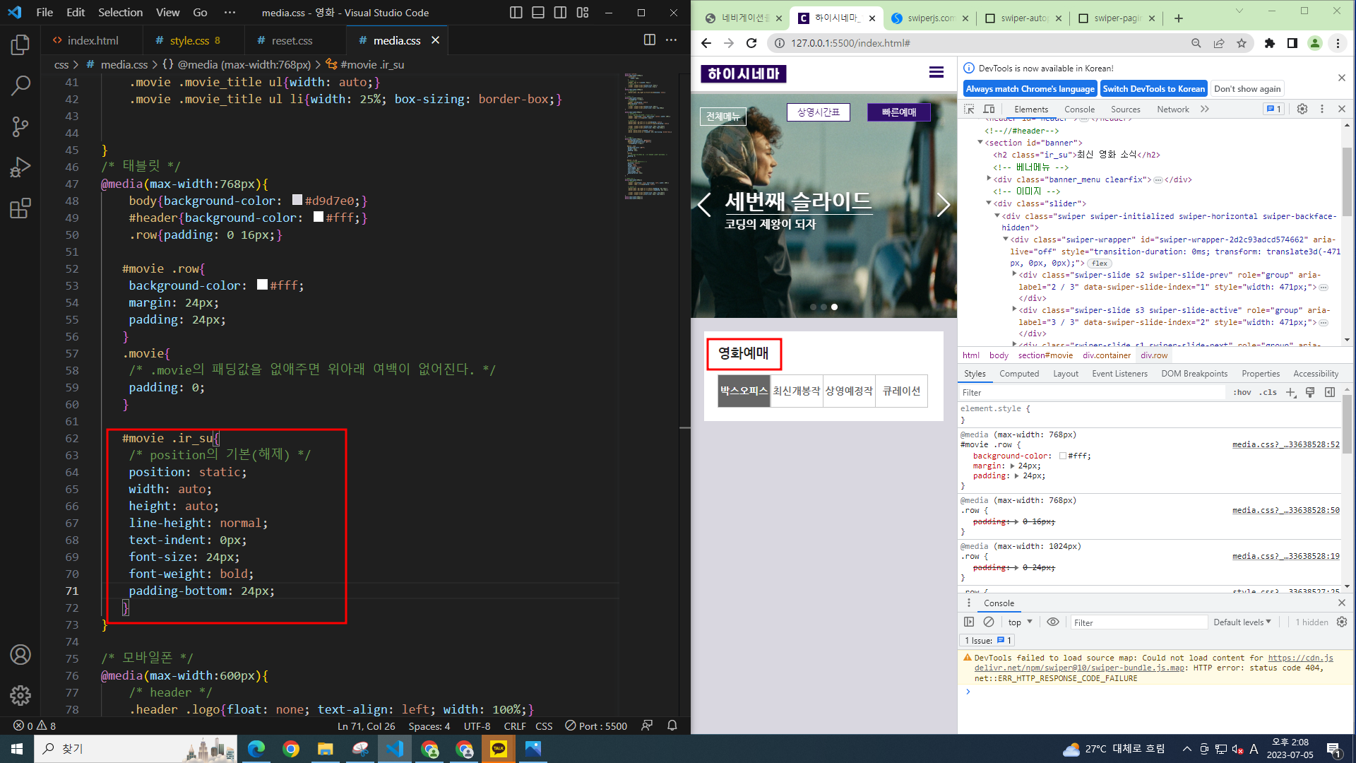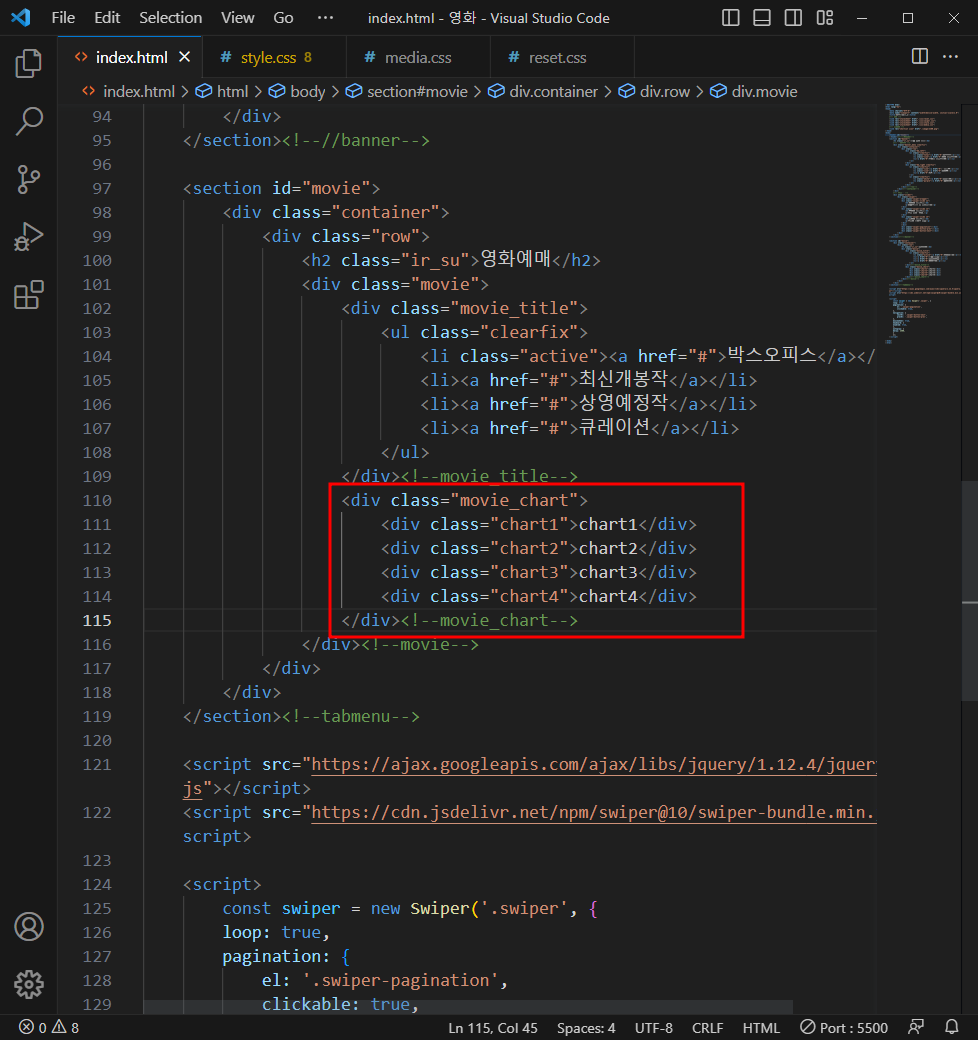 비주얼 스튜디오 코드 64_ 하이시네마 웹페이지 03