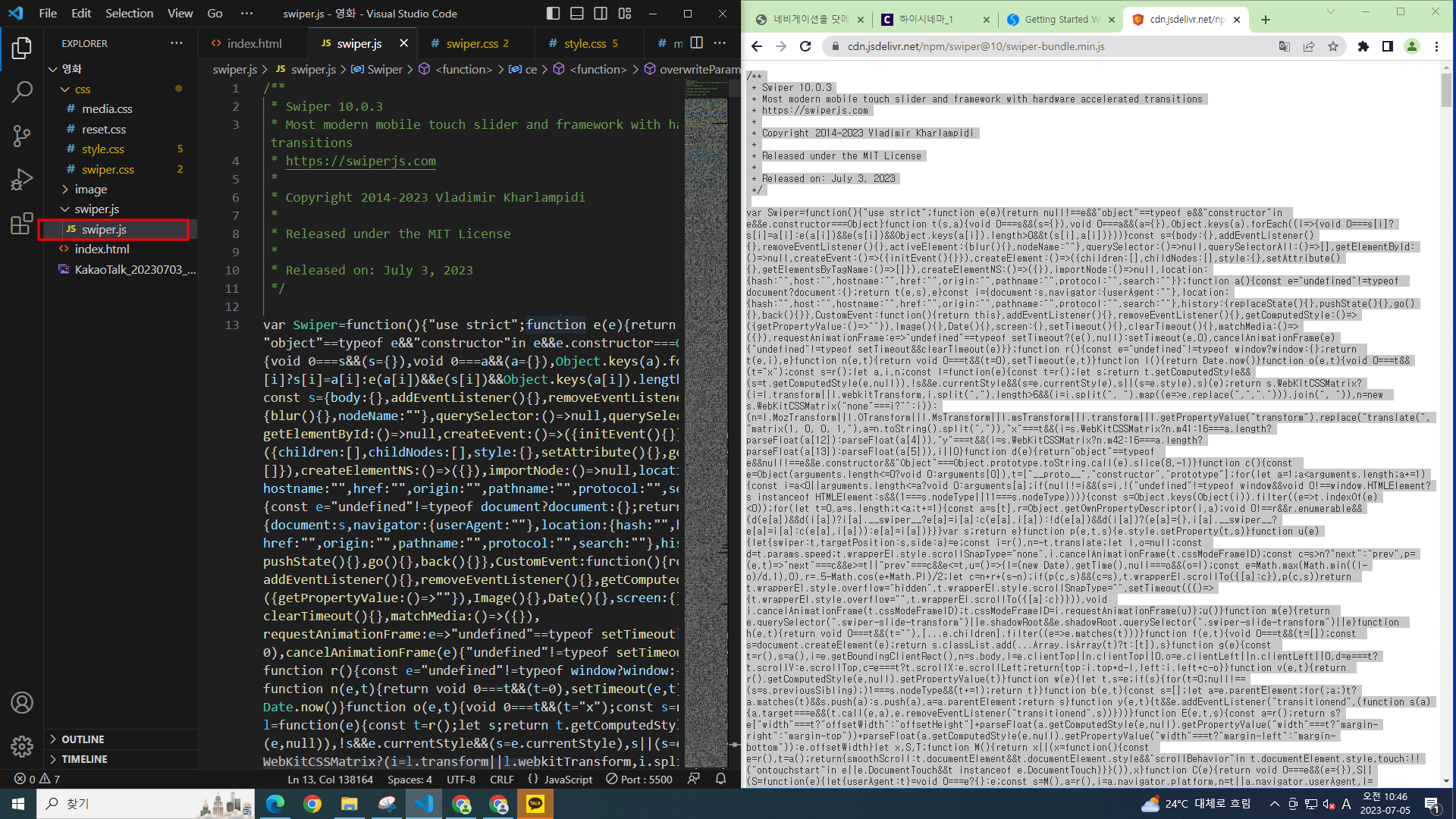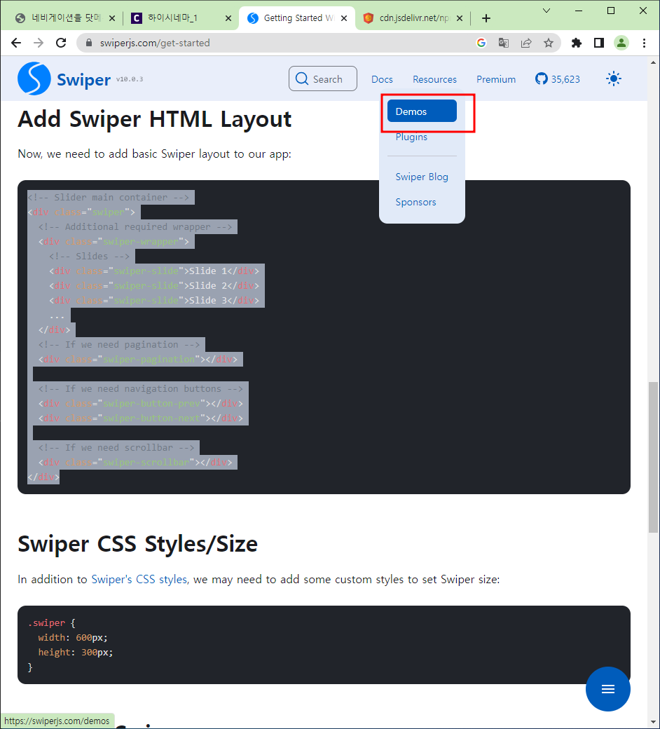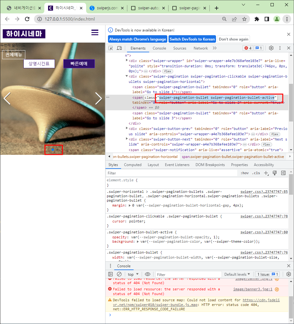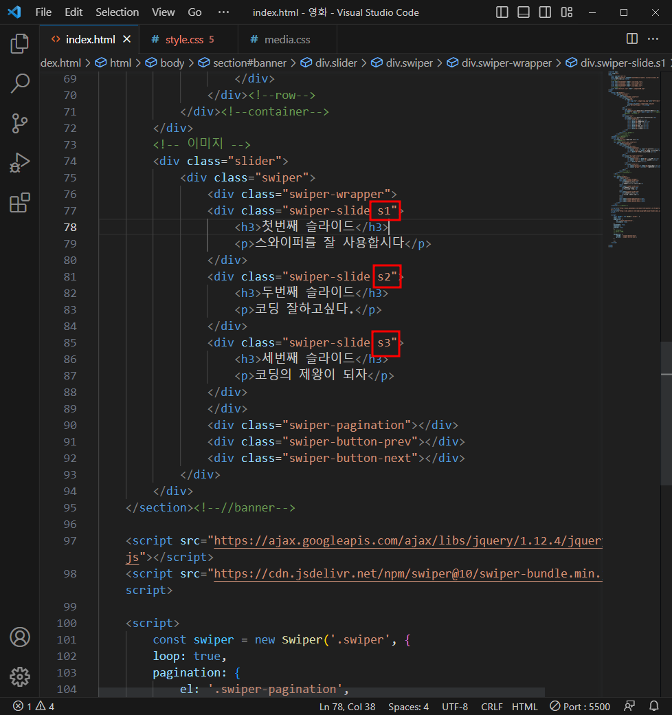 swiper.css파일 새로 만들어서 복사한 것 붙여넣기