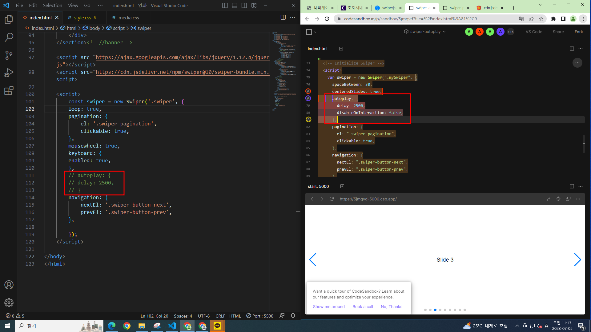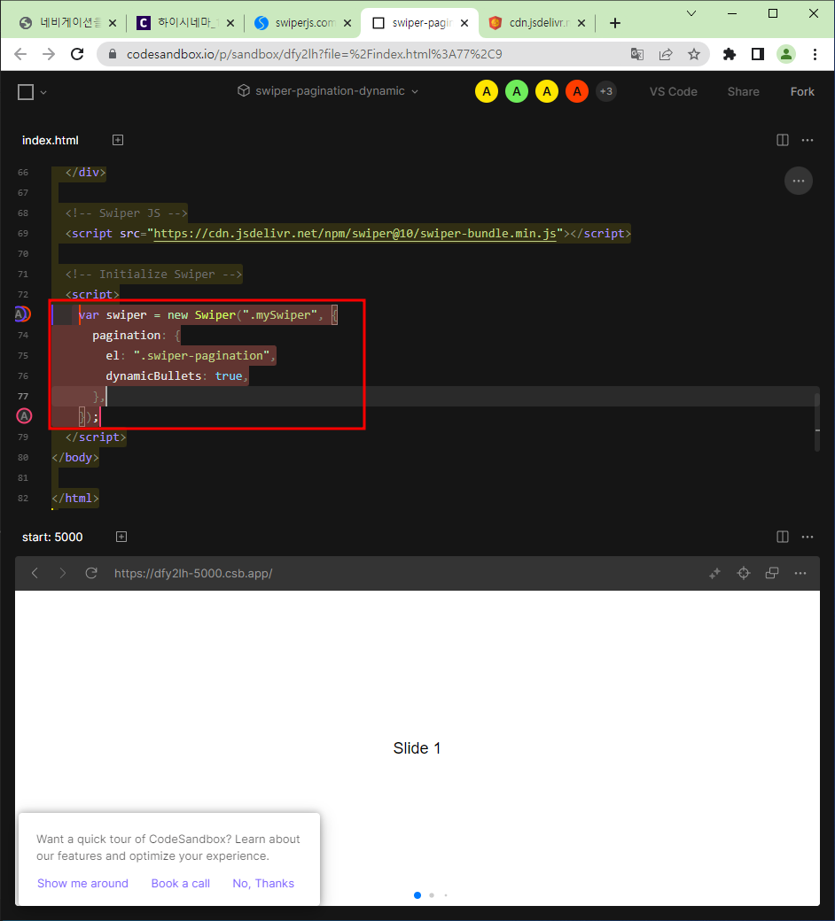 swiper html 마크업 복사해서 .slider 안에 넣기
