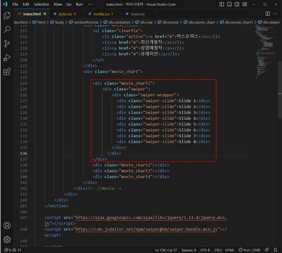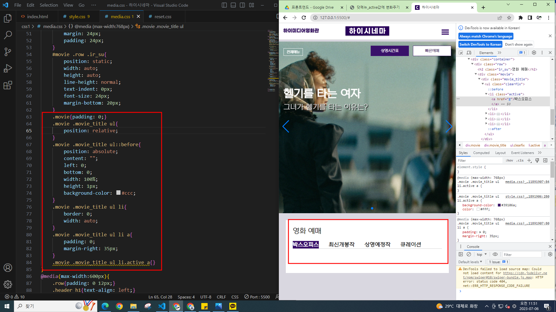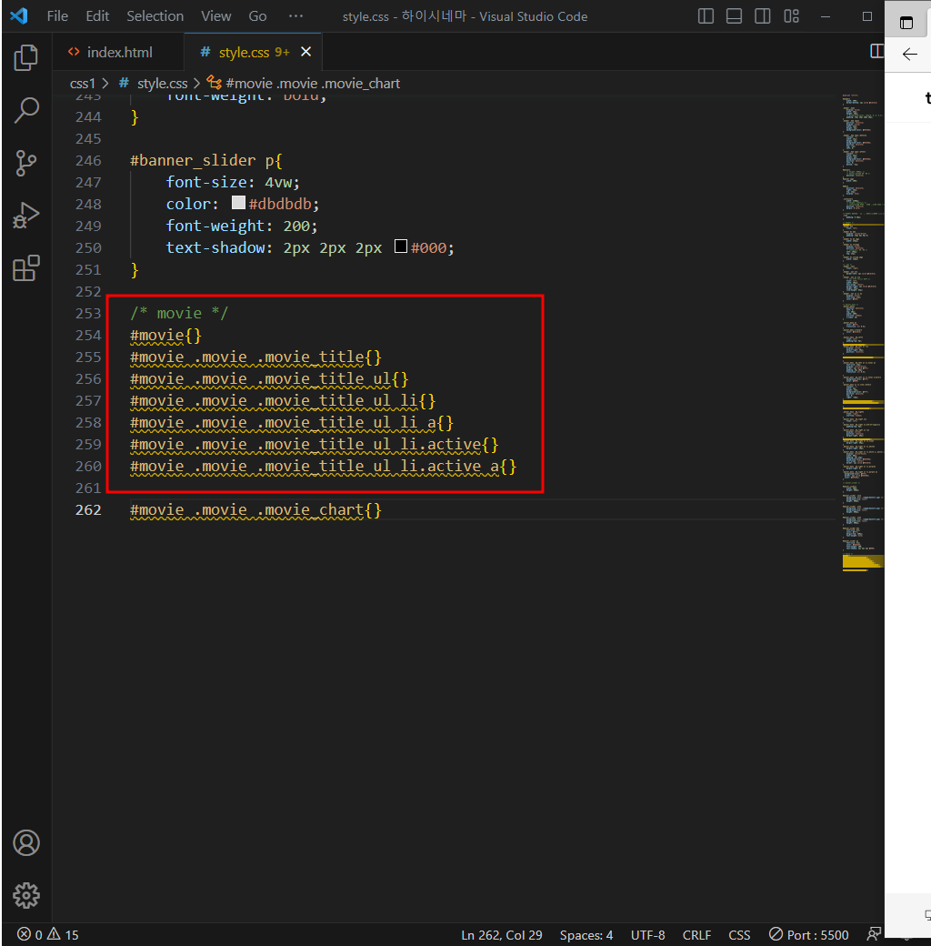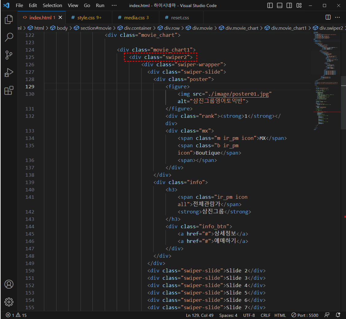 비주얼 스튜디오 코드 67_ 하이시네마 탭메뉴