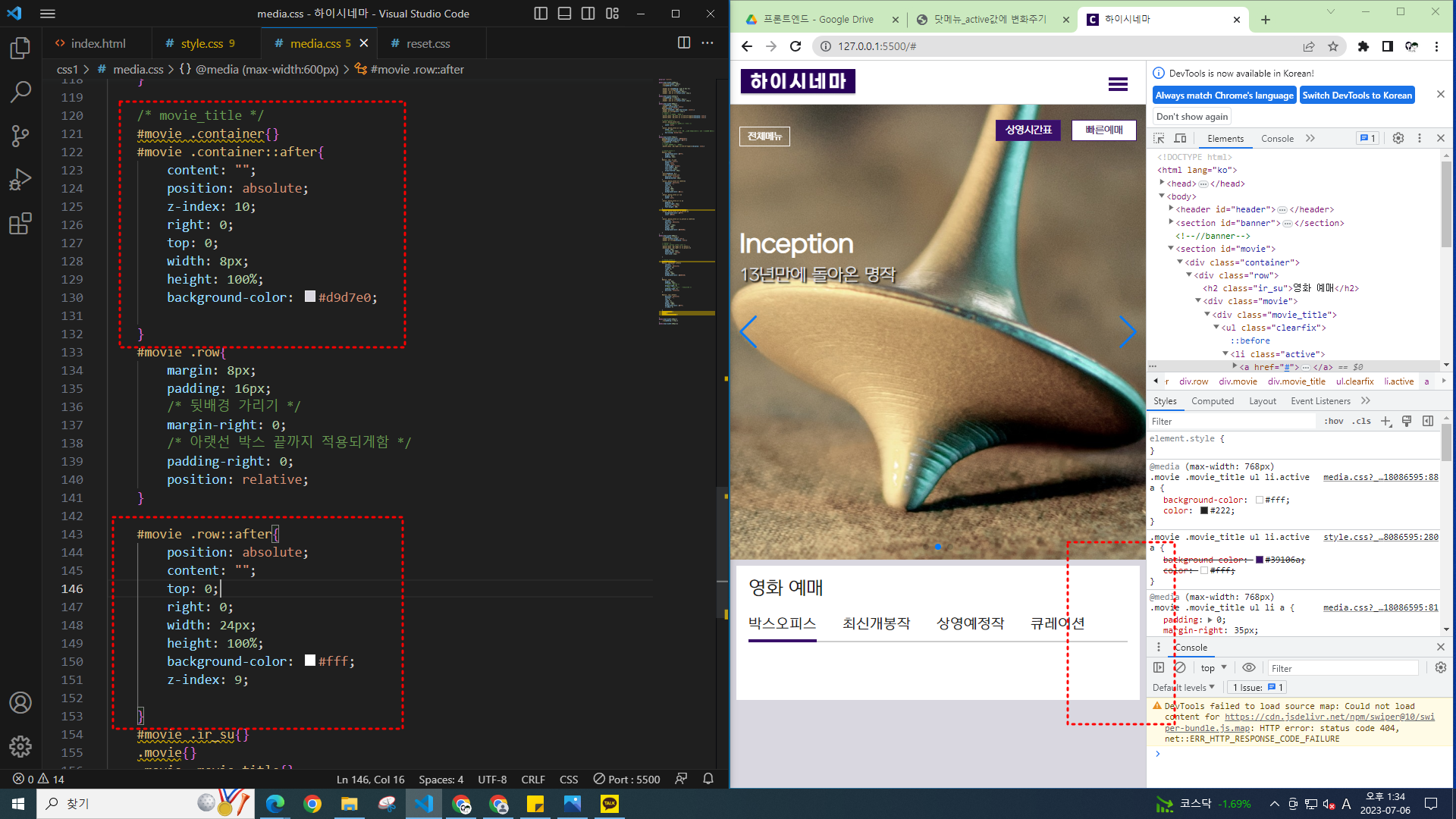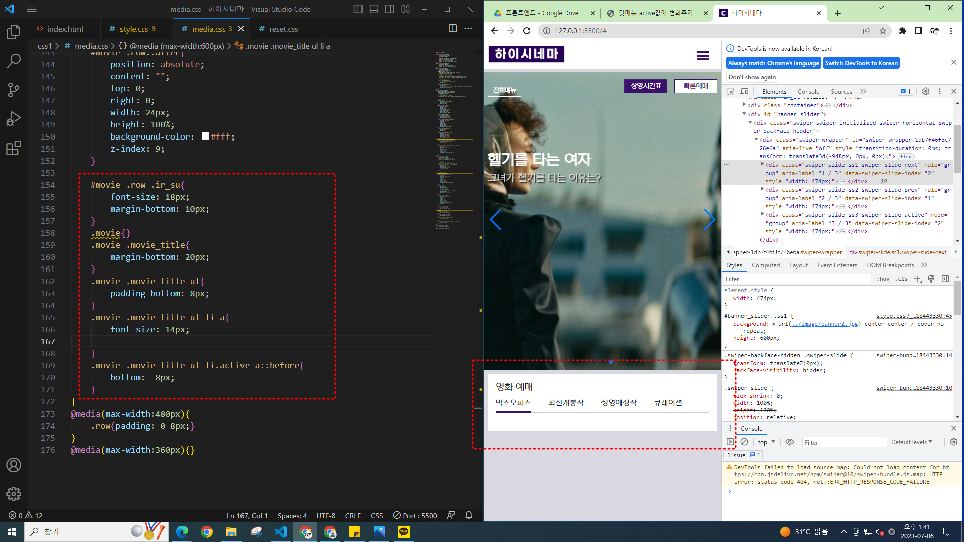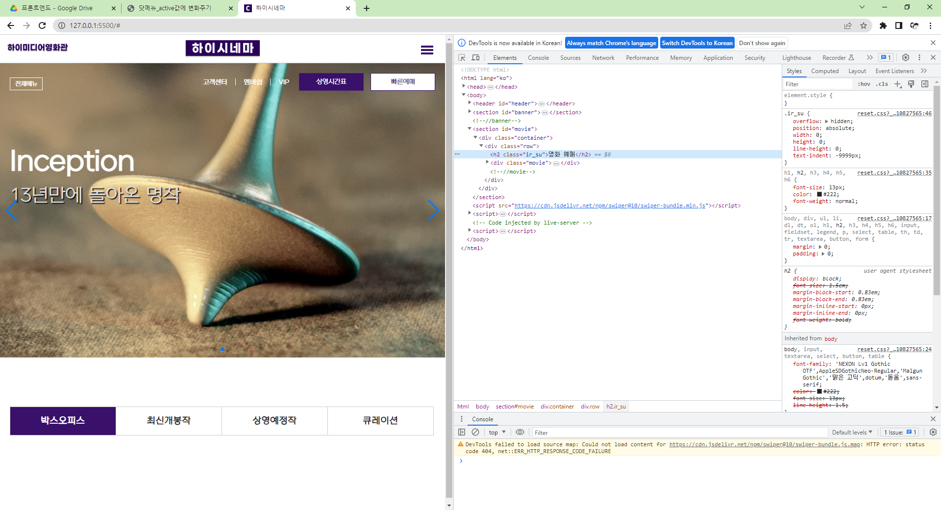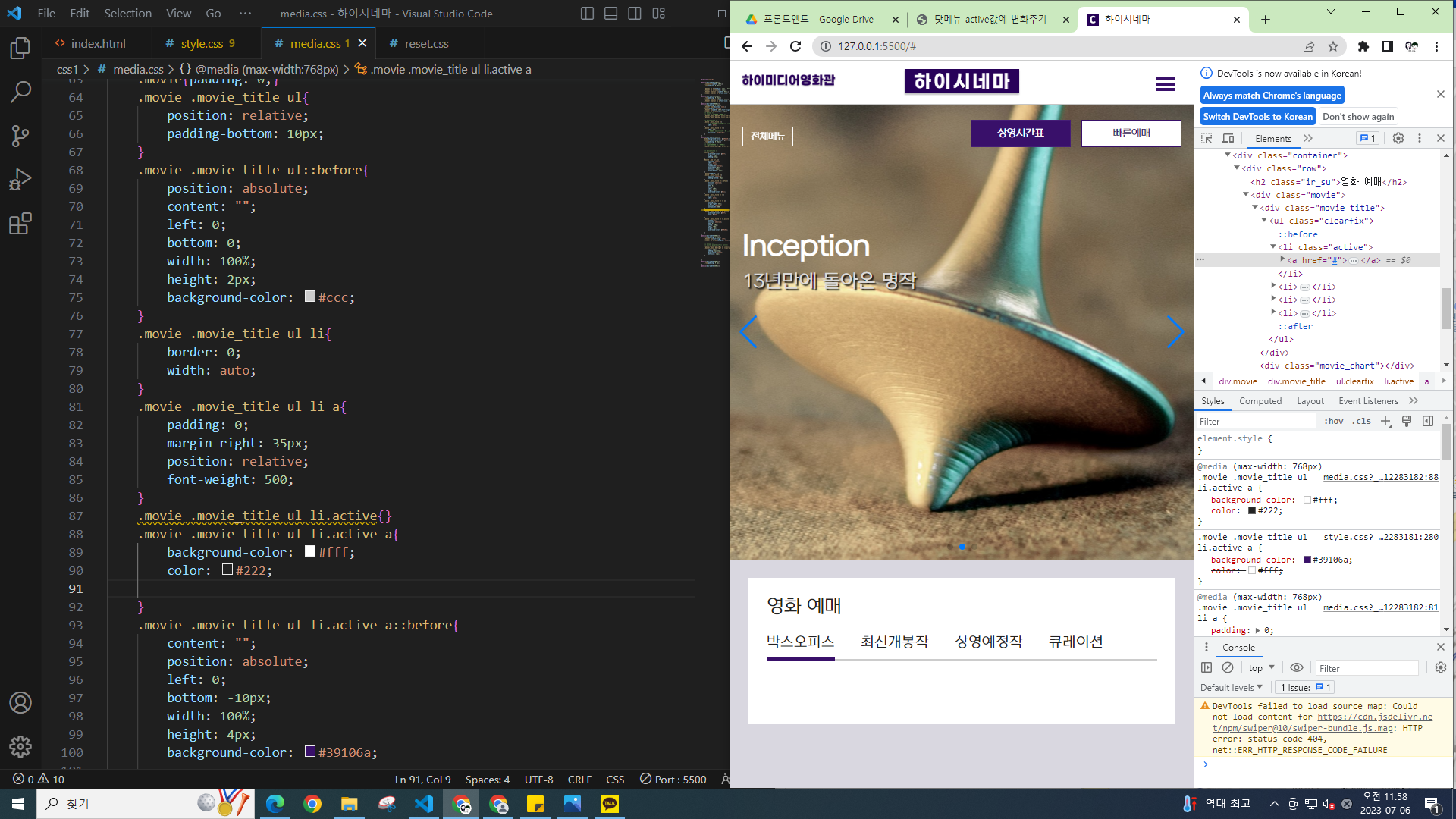 비주얼 스튜디오 코드 67_ 하이시네마 탭메뉴