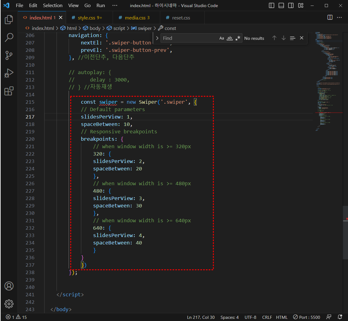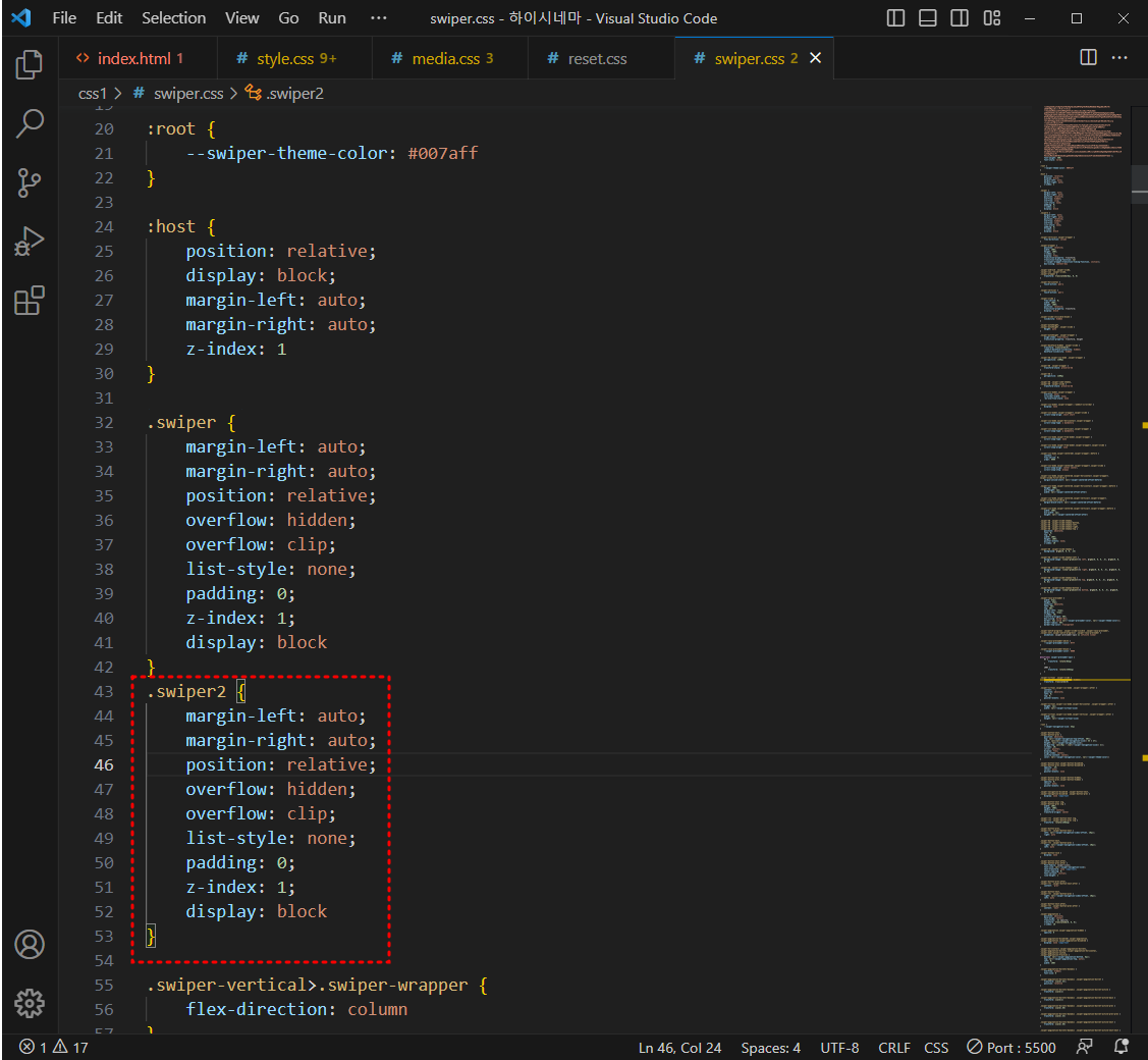 swiper.css 열어서 .swiper 복사