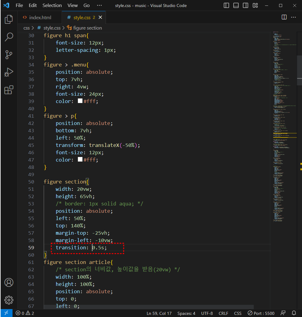 section에 시간을 줘야 움직이는게 보임