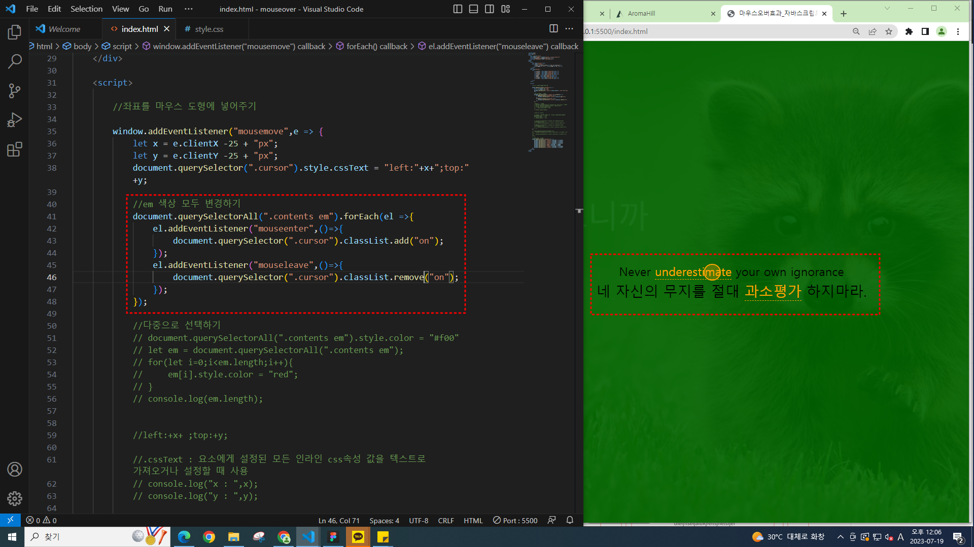 비주얼 스튜디오 코드 81_마우스오버효과_자바스크립트