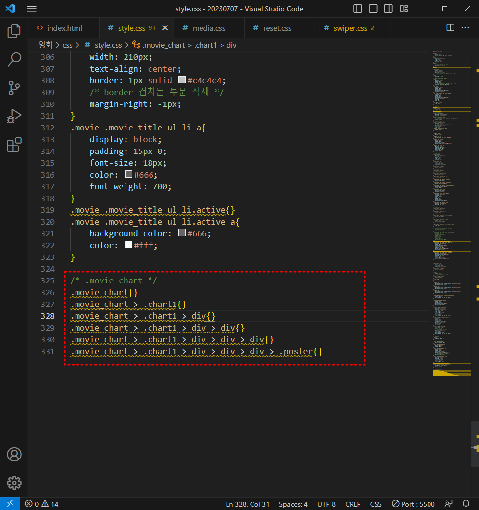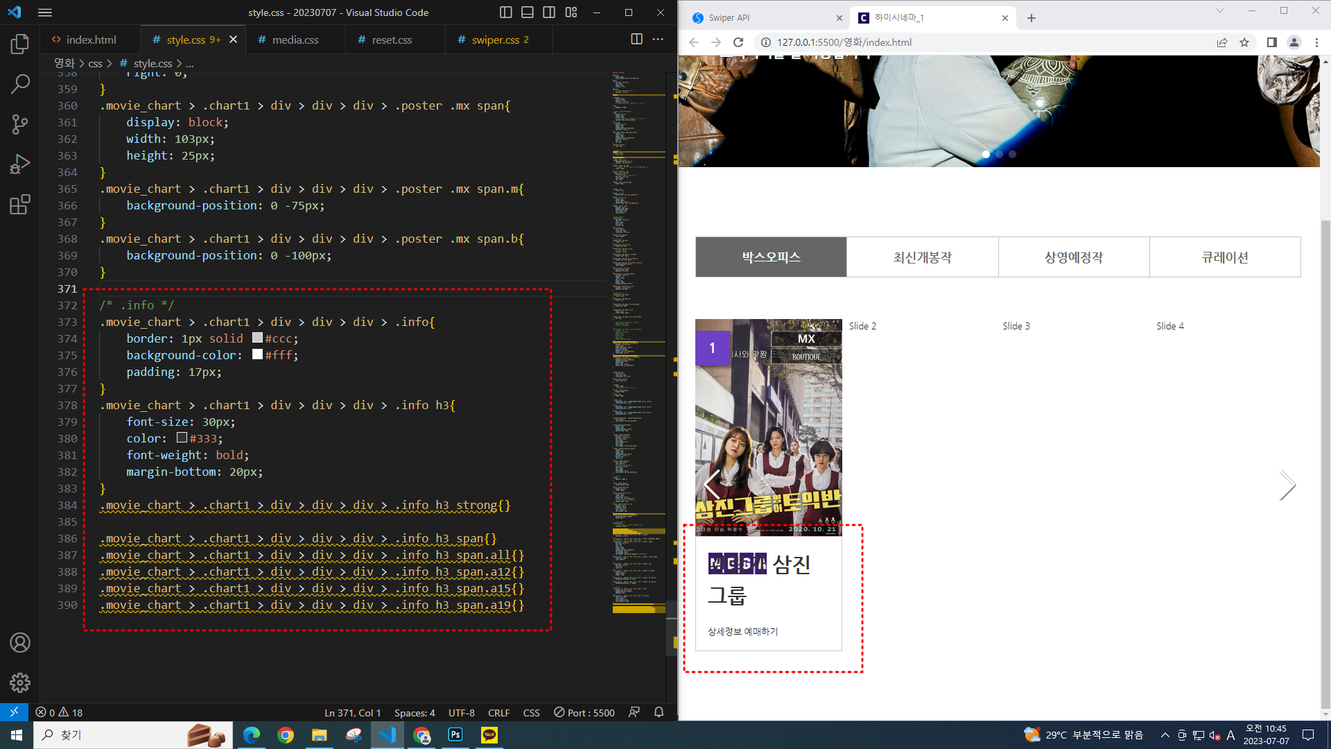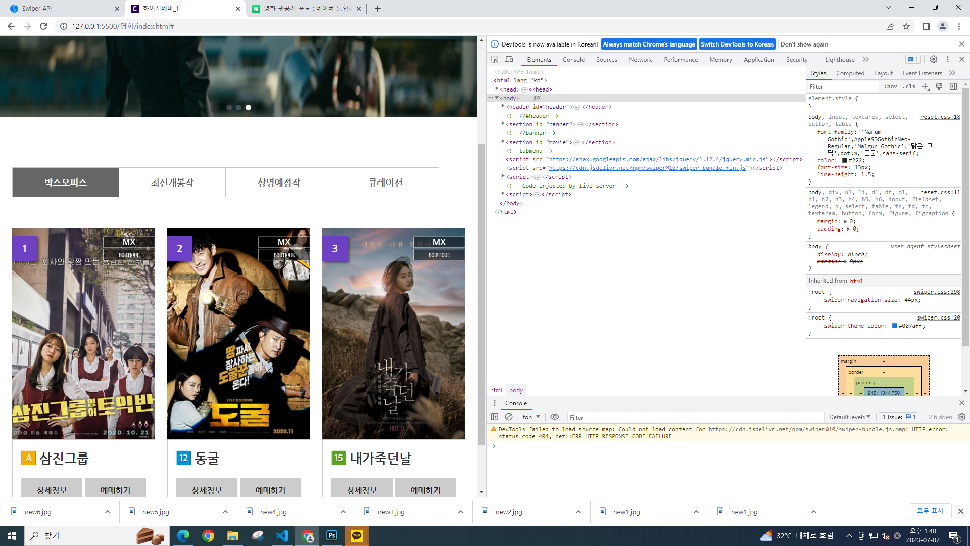 그리고 각 포스터이미지와 영화제목 랭크만 수정하기
