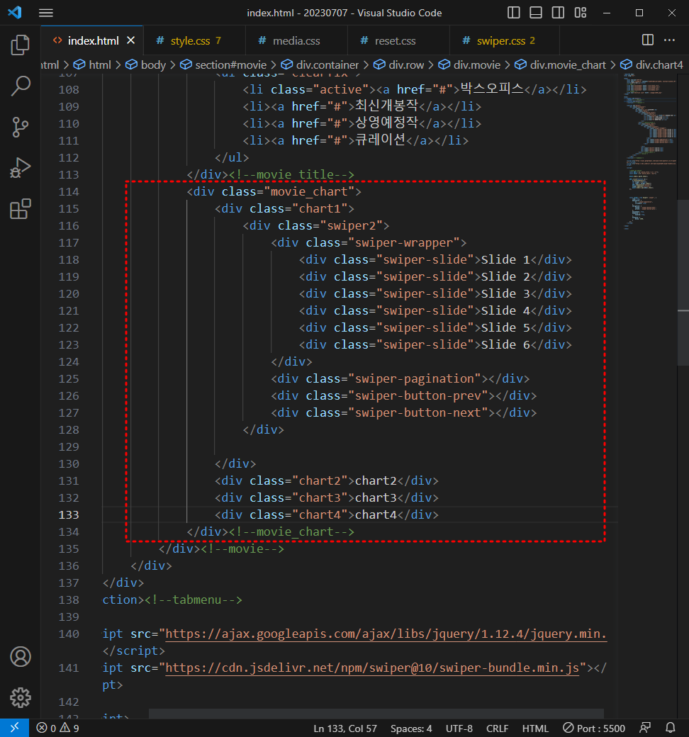 비주얼 스튜디오 코드 68_ 하이시네마 탭메뉴_02