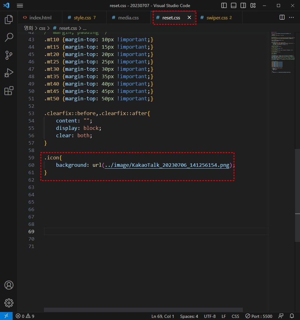 html 에 icon 이름을 넣어주면 reset에 넣은 icon 이미지가 들어간다.