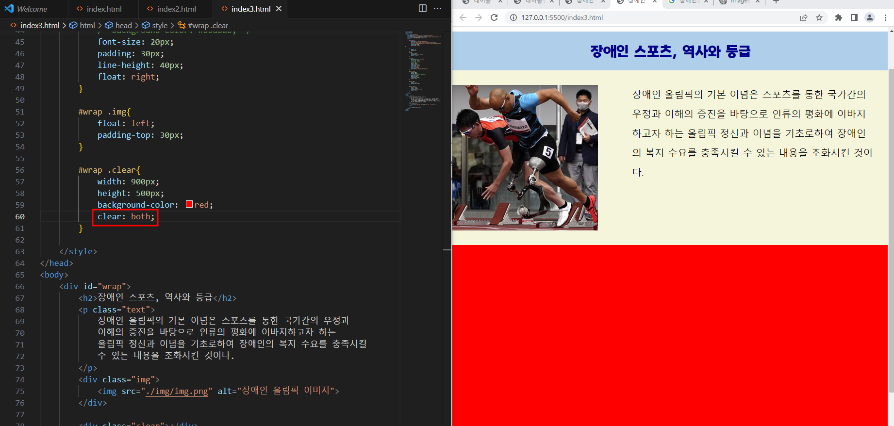 float은 clear: both; 반드시 같이 넣어줘야함