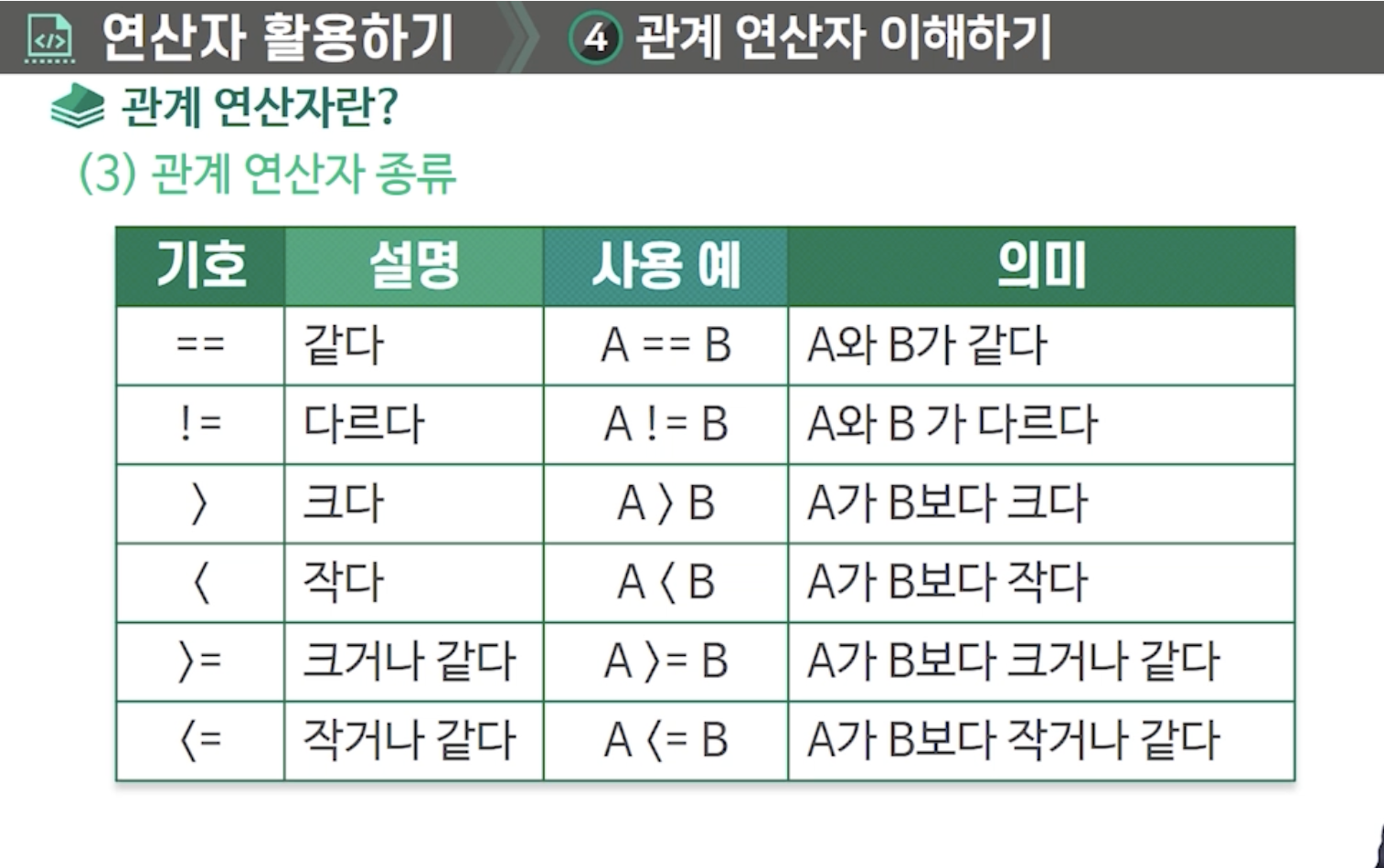 = : 같다 라는 뜻이 아닌 대입연산자로 사용된다.
