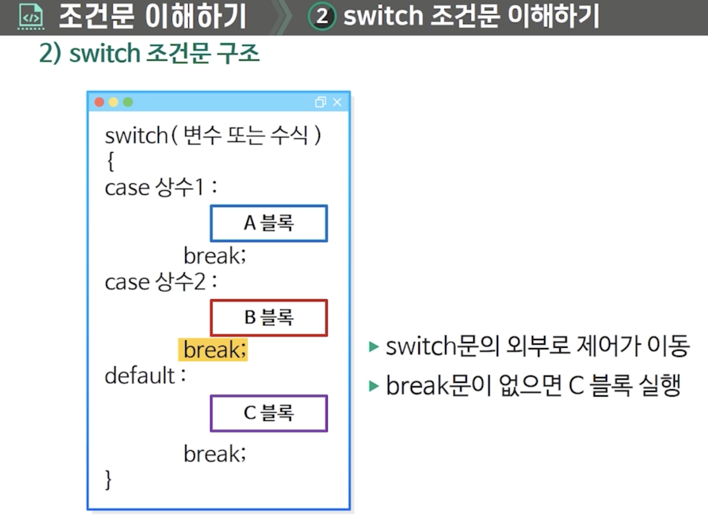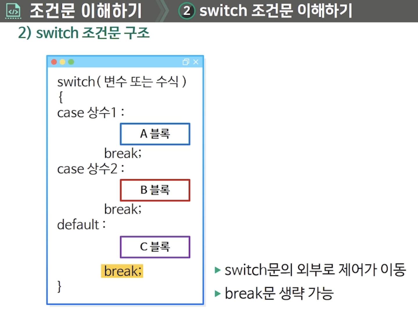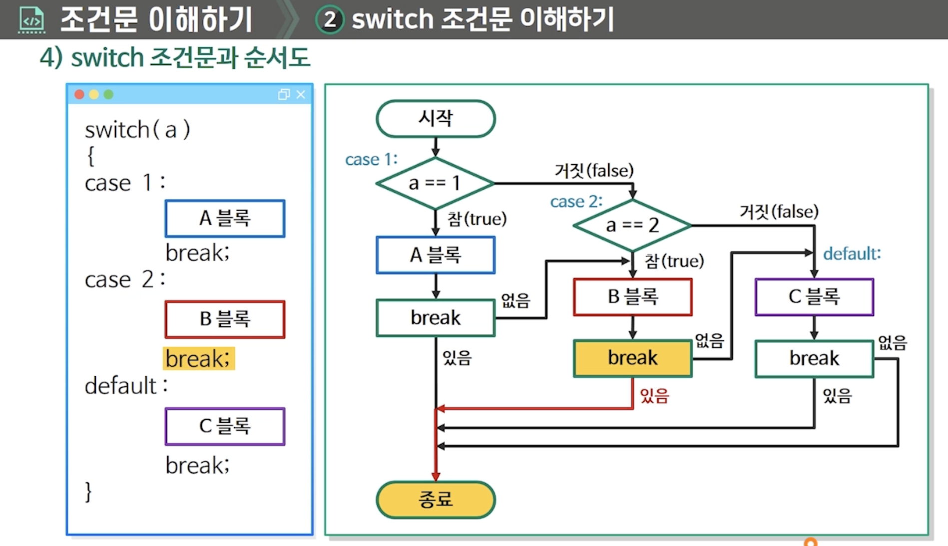 B블록은 조건식과 상관없이 실행되는 부분이다.