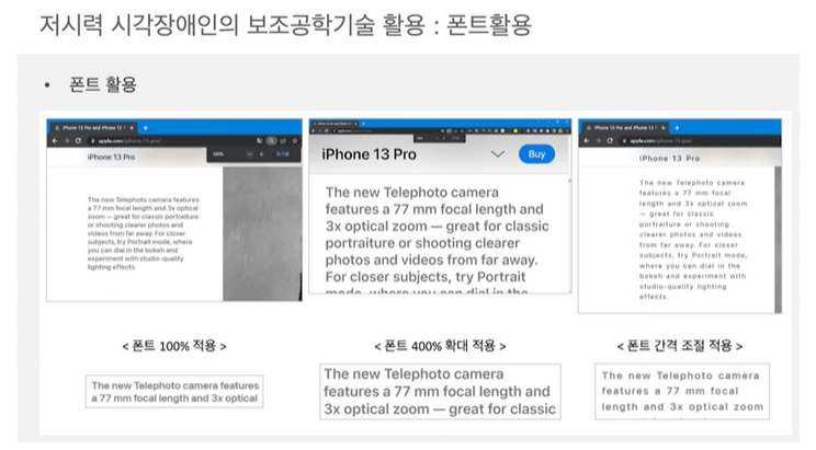 보조기술을 사용하여 해당 콘텐츠를 음성을 통해 들을 수 있으므로 최소한의 접근권을 보장받을 수 있게 된다.
