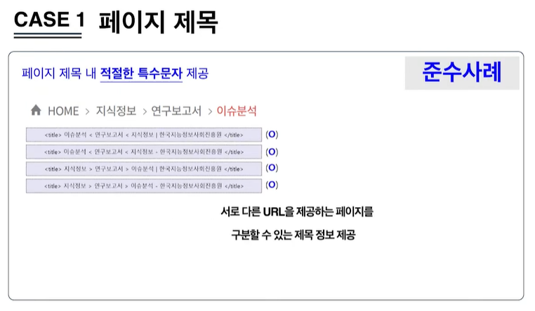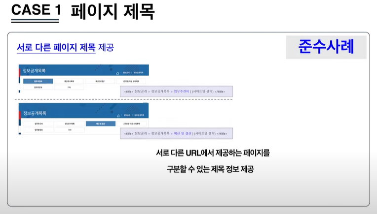 1. 웹 사이트가 제공하는 모든 웹 페이지에 서로 다른 제목을 제공하면 동시에 여러개의 웹 페이지가 열려있더라도 사용자는