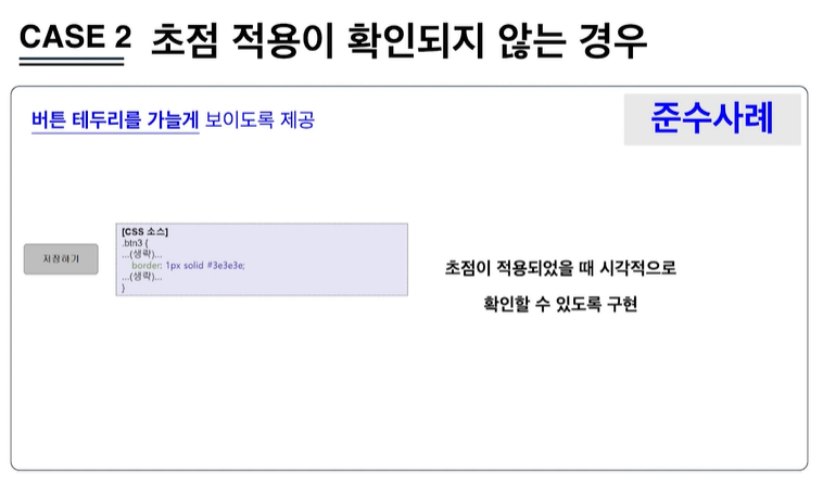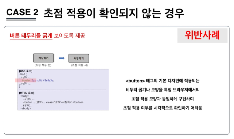2. 초점을 받은 콘텐츠는 저시력 장애인과 지체 장애인들이 인지할 수 있도록 시각적으로 구별되어야 한다.