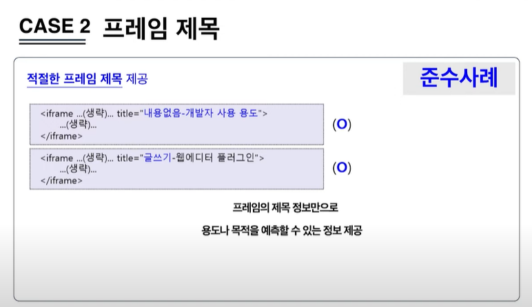 2. 웹 페이지를 구성하는 모든 프레임에 제목을 제공하면 사용자는 프레임 제목을 통해 프레임 간을 매우 편리하게 이동할 수 있다.