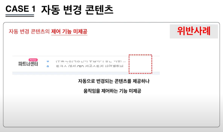 1. 배너와 같이 빠르게 변화하는 콘텐츠를 이용하기 어려운 지체 장애인, 노인, 뇌병변 장애인들도 빠르게 변화하는 콘텐츠를 이용할 수 있다.