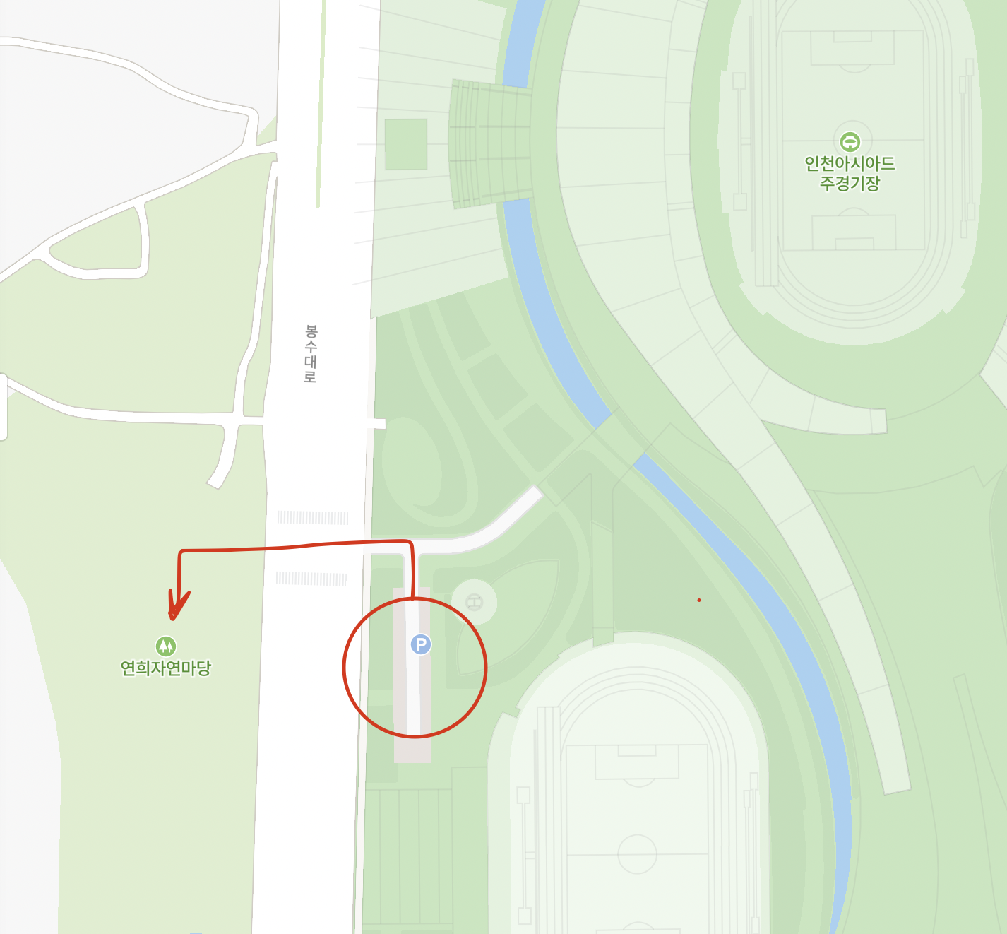 주차는 아시아드경기장에서 주차하시고 굴다리를 통해서 가면됩니다.
