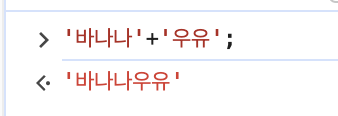 < 뒤에 나오는 값은 콘솔에 입력한 명령의 값이다. 문자열을 입력했기 때문에 그 값이 그대로 출력된다.