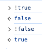 식 앞에 !를 붙이면 참인 값들은 false 가 되고, 거짓인 값은 true가 된다.