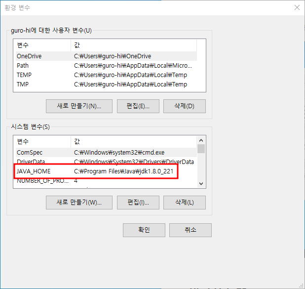 1. JAVA_HOME 환경 변수 설정(필히! JDK 설치 후에 진행해야 함)