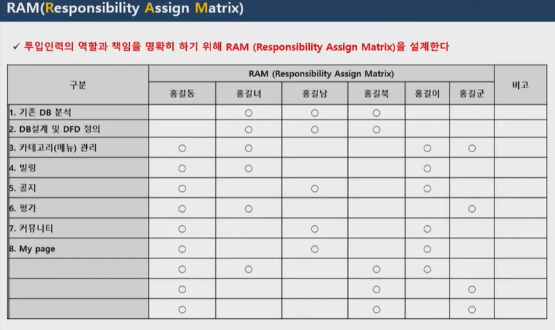 저는? RAM(Responsibility Assignment Matrix)를 작성한다.