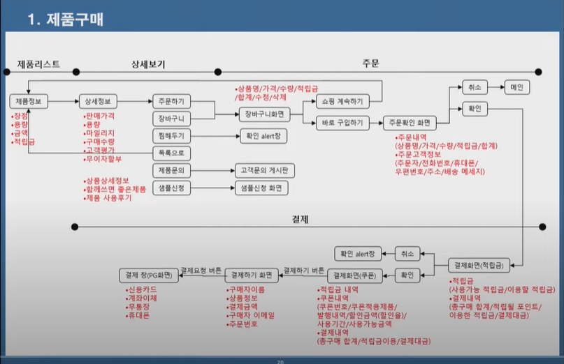 · 목적: 구현(개발)해야 할 기능 및 서비스의 전체 흐름을 파악하고, 각 기능 및 서비스를 이용하기 위한 선행작업이나 조건들을