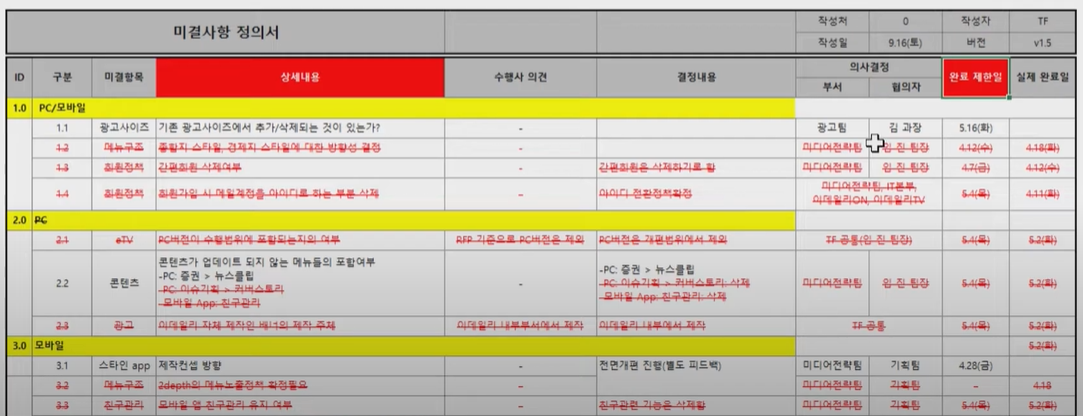 저는? '미결사항정의서'를 작성해 해당화면을 설계하기 전에 결정되도록 유도한다.(안되면, 나중에 "독박"쓴다)