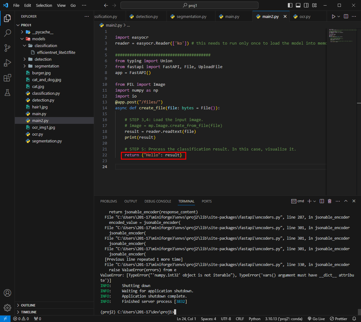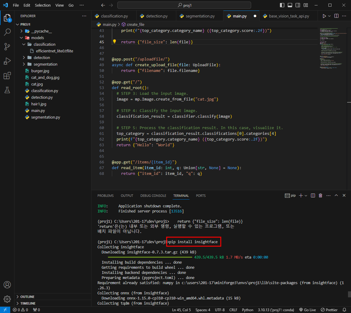 numpy 버전 충돌로 버전을 낮추어야 해결이됨