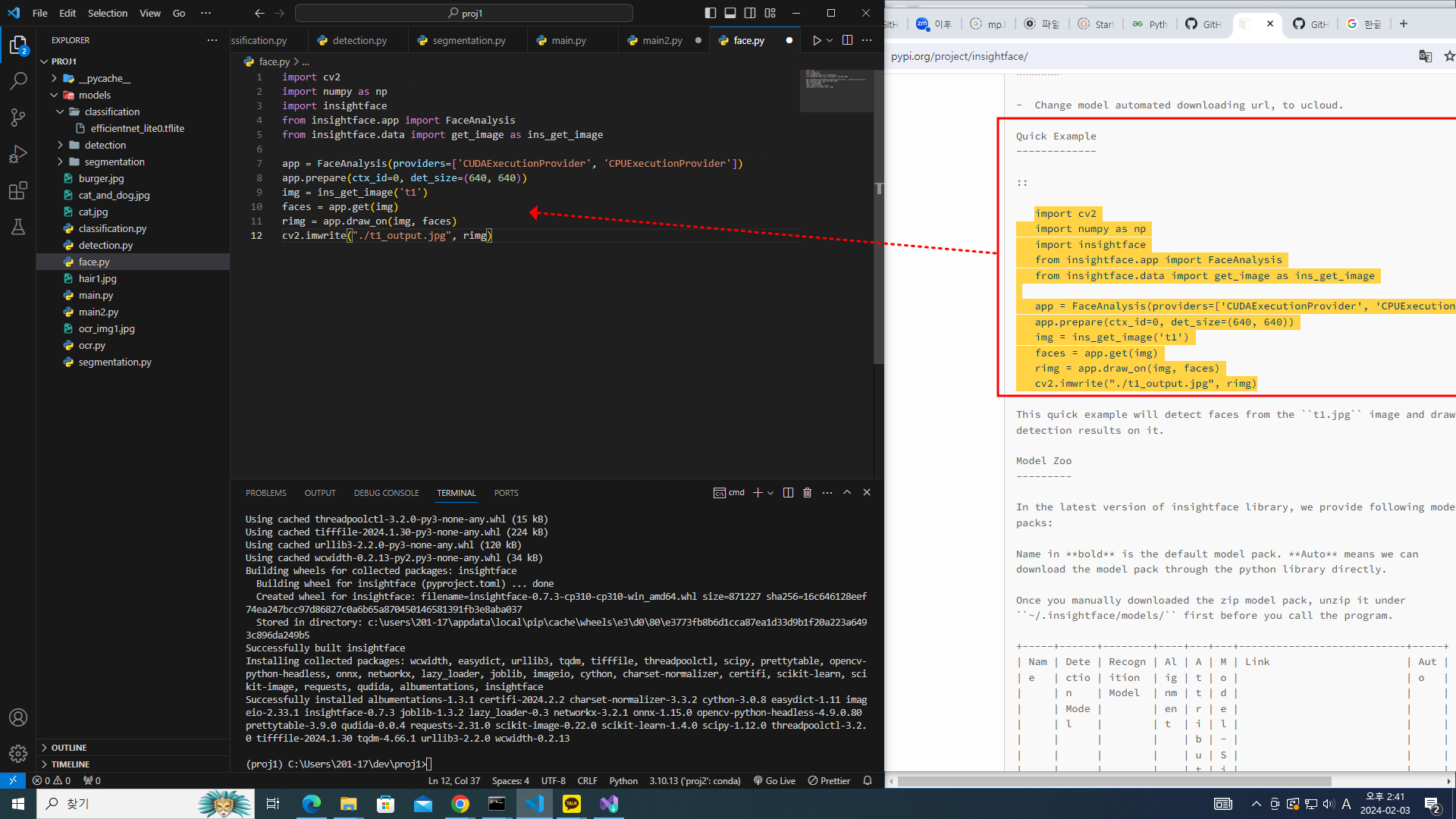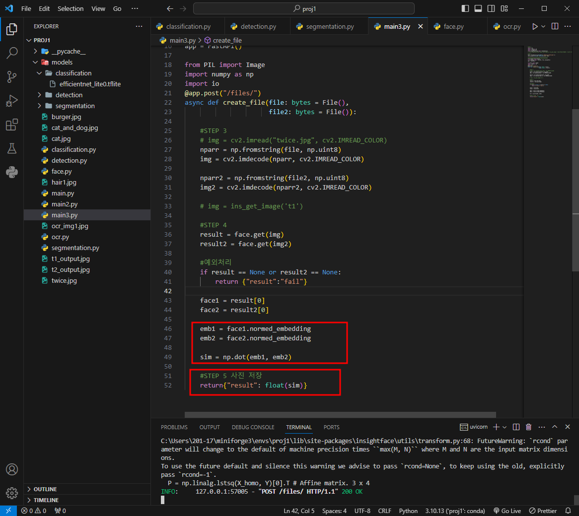 face에서 얼굴유사도를 측정하는 임베드 값을 꺼낼것임