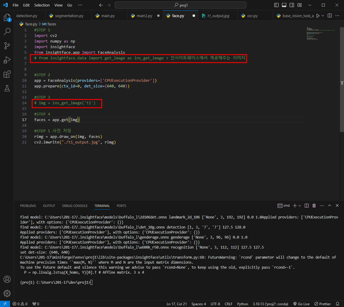 face = FaceAnalysis(providers=['CPUExecutionProvider'])