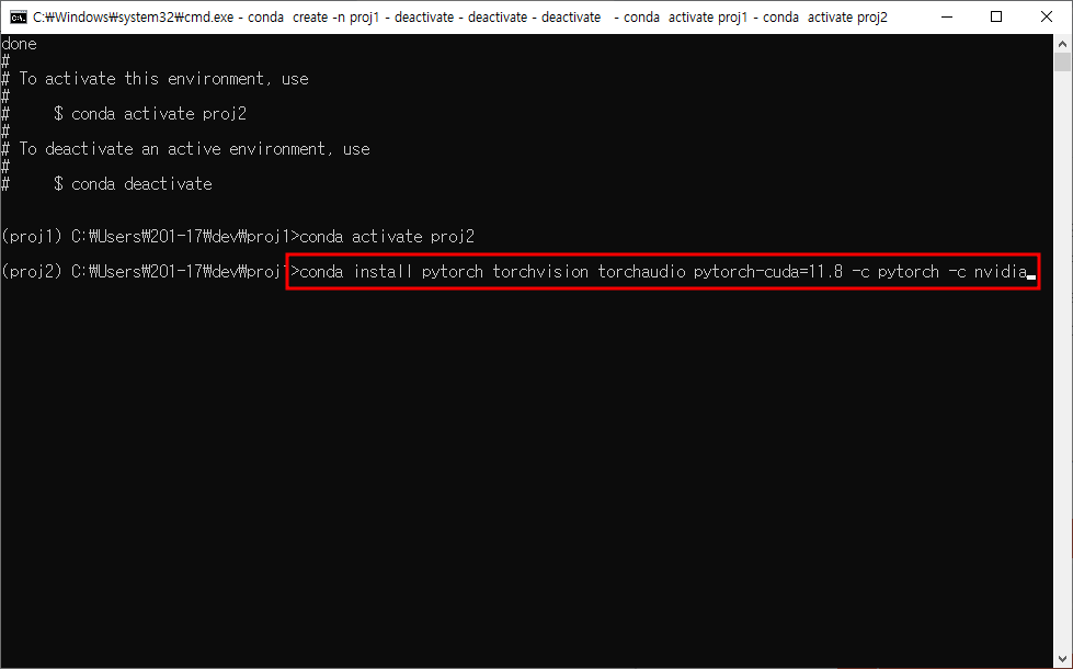 윈도우 - gpu버전에서 설치는 됐지만 쿠다 자체에대한 설치가 안되서 에러가 남