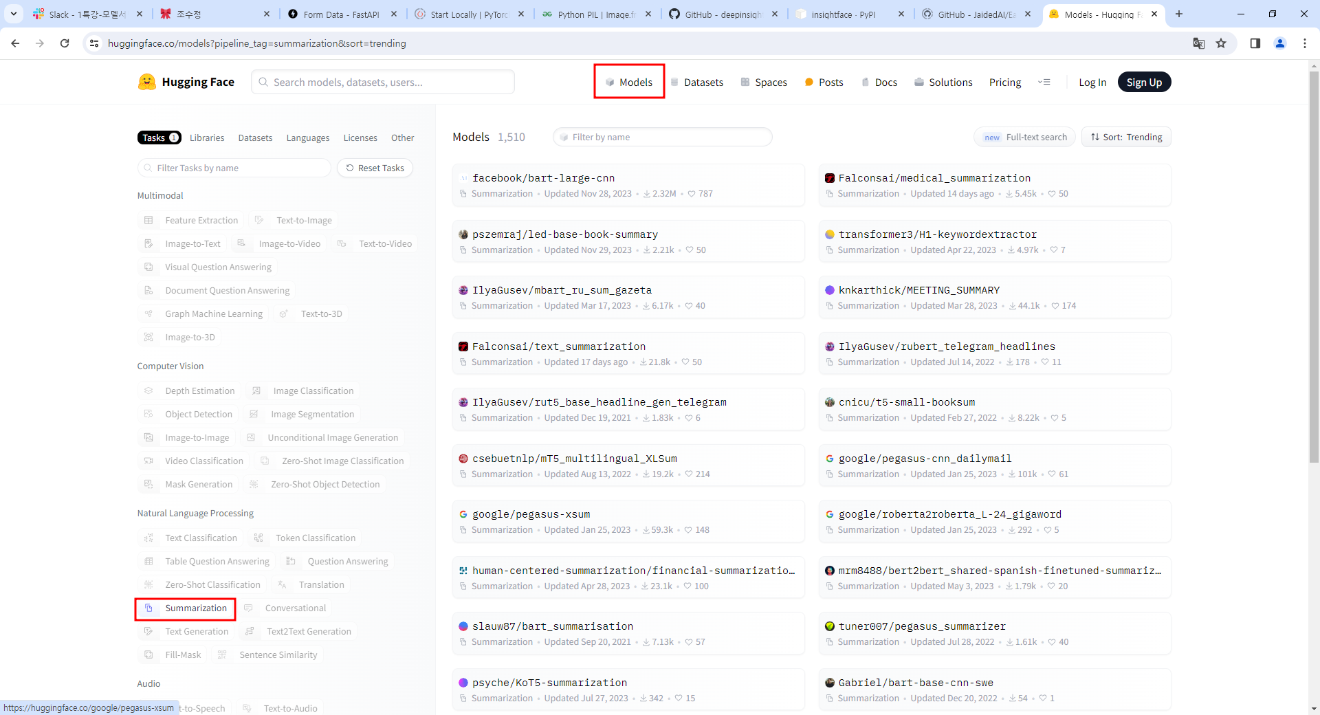 각 각 모델별로 토크나이저 모델을 제공하지만