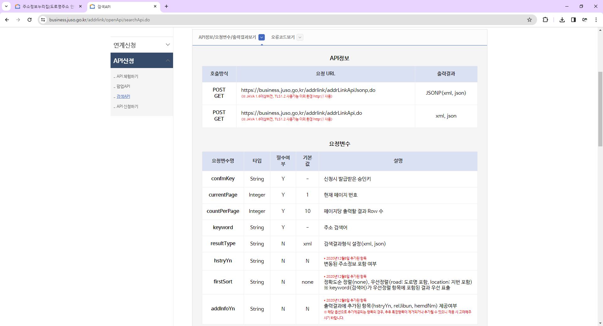 url :"https://business.juso.go.kr/addrlink/addrLinkApiJsonp.do" //인터넷망