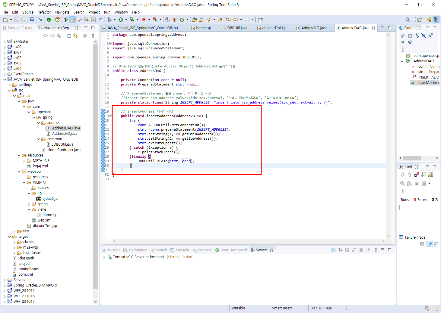 private static final String INSERT_ADDRESS ="insert into jsp_address values(idx_seq.nextval, ?, ?)";