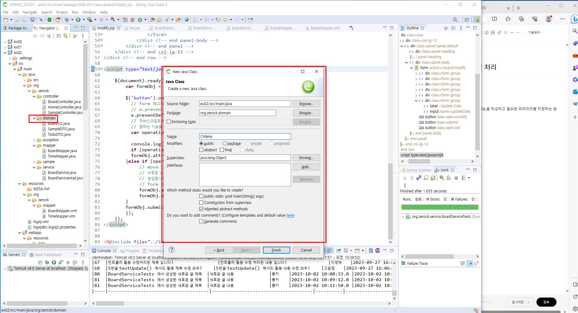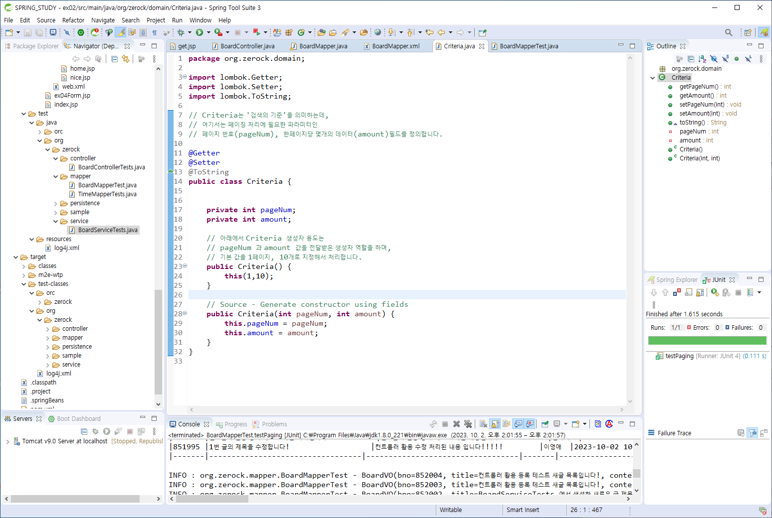 // 추가하고 실행합니다. 마지막에는 Model에 담겨 있는 BoardVO 인스턴스의 내용을 볼 수 있습니다.