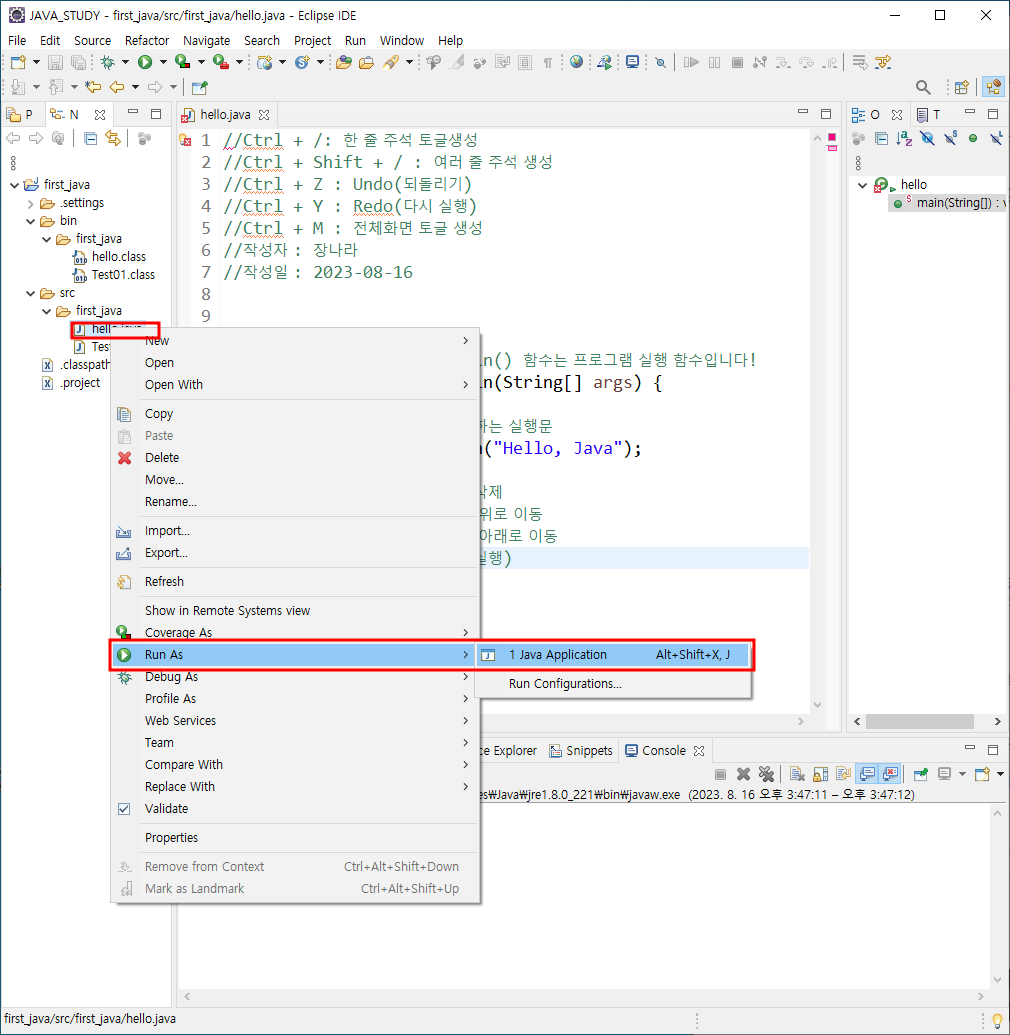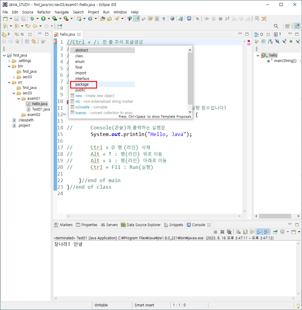 5. Ctrl + / = 한줄 주석 설정 및 해제
