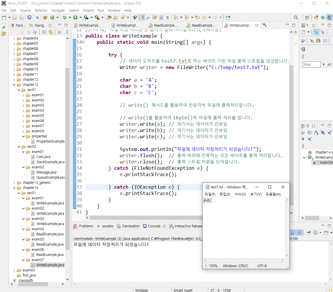 // 다음 예제는 앞서 생성했던 sec01.exam07.WriteExample 실행 클래스에서 생성했던