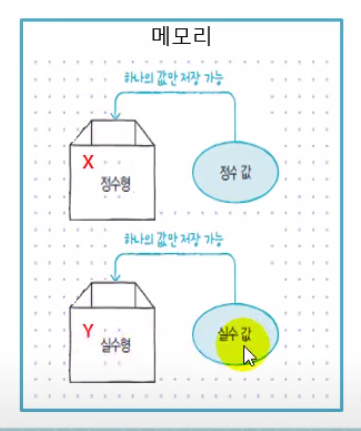 자바의 변수는 같은 타입의 하나의 값만 저장 할 수 있다.