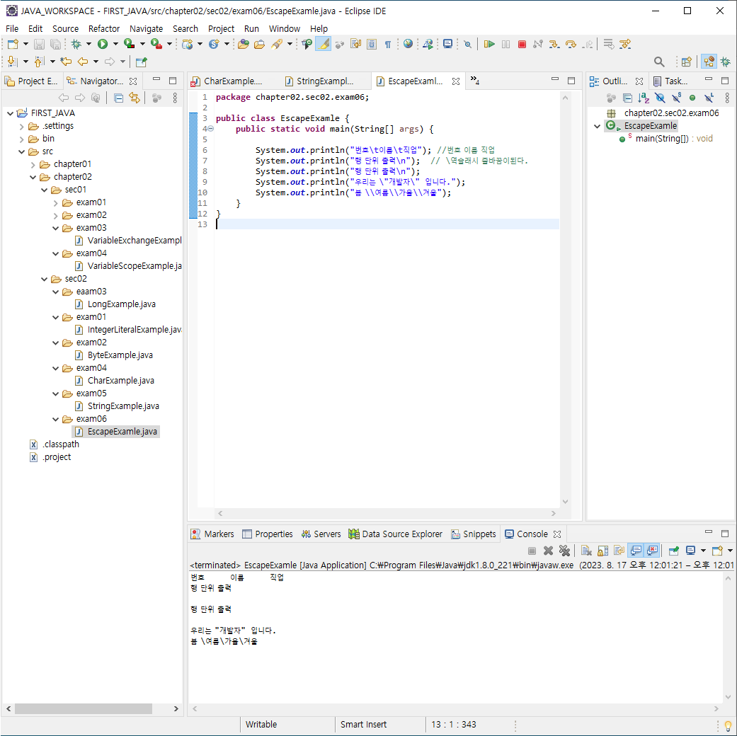 System.out.println("우리는 \"개발자\" 입니다.");