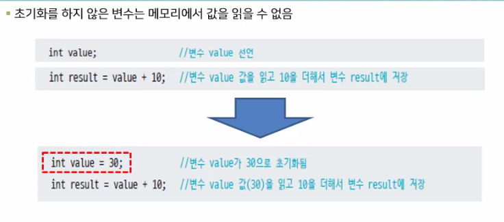 ▶ 변수 초기화 : 변수에 최초로 값을 저장하여 변수를 생성함
