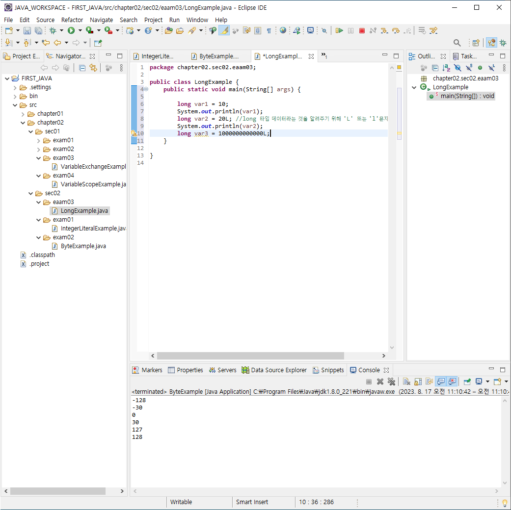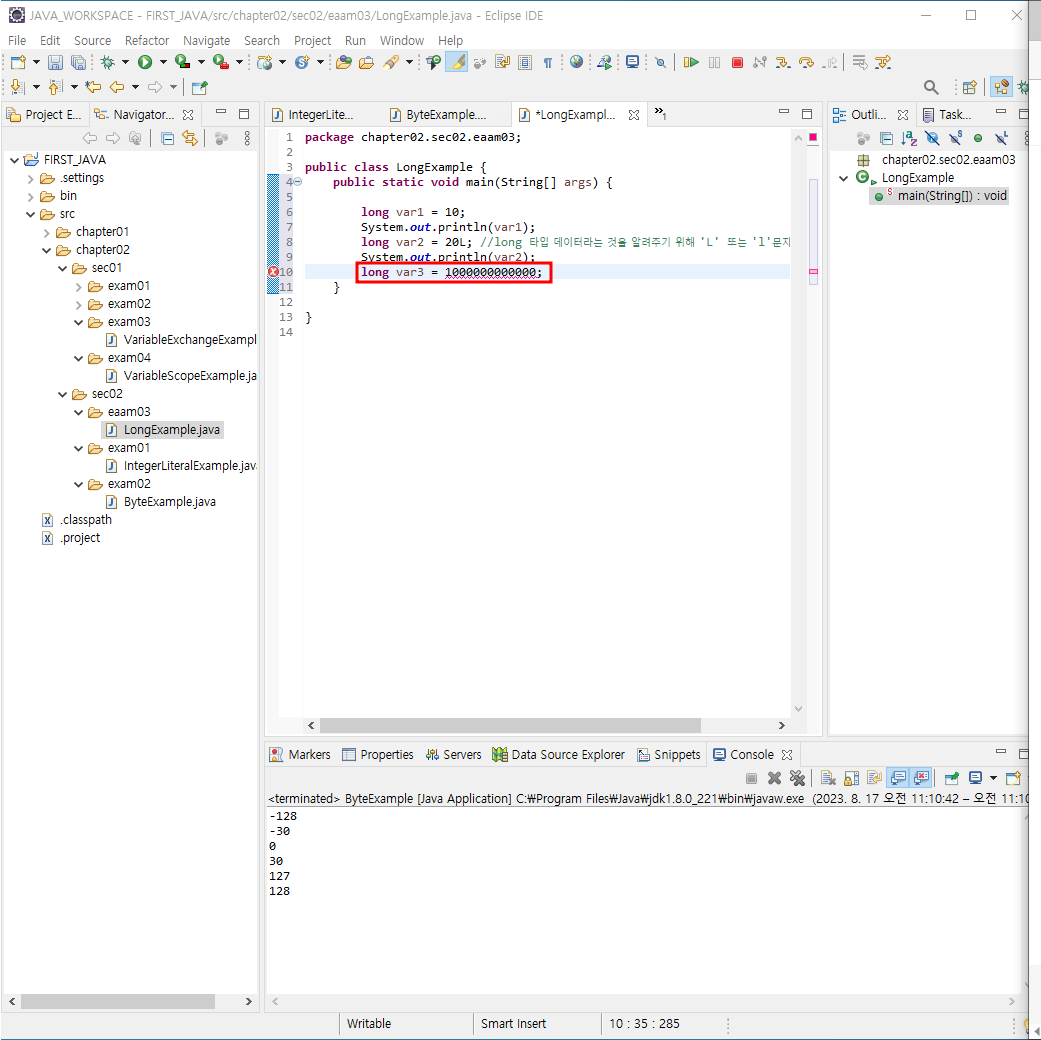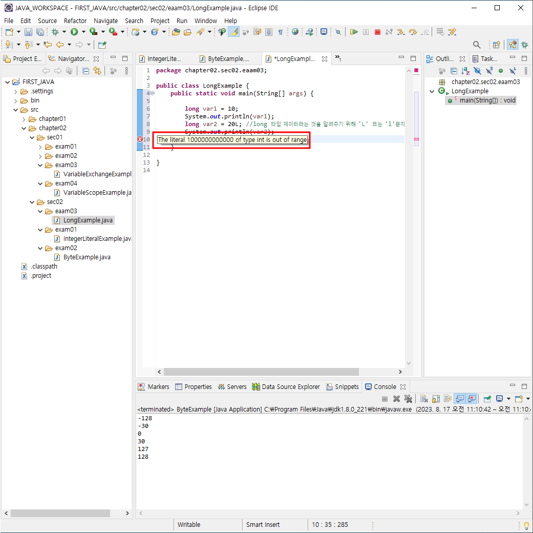 long var6 = 128; //128데이터는 short, int, long 타입에서 처리가능함