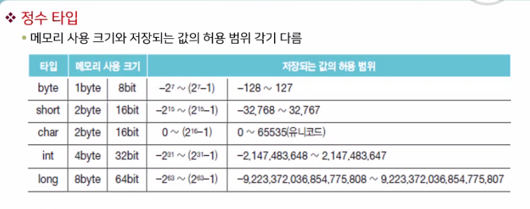 //int 타입의 값 허용 범위 = -2, 147, 483, 648 ~ 2,147,483,647