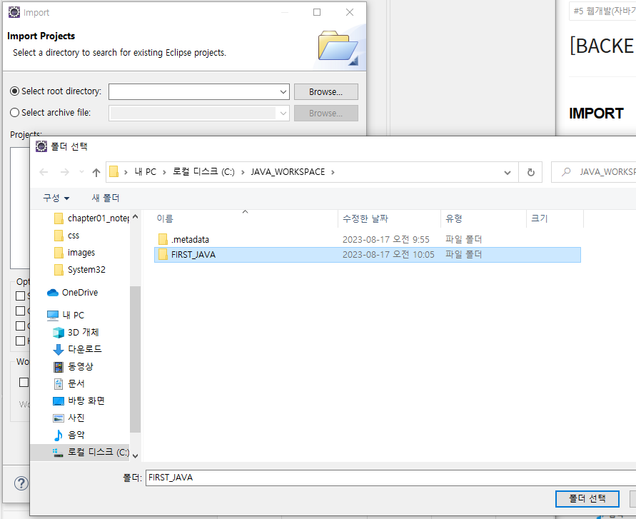 import 할 파일을 작업파일에 붙여넣기