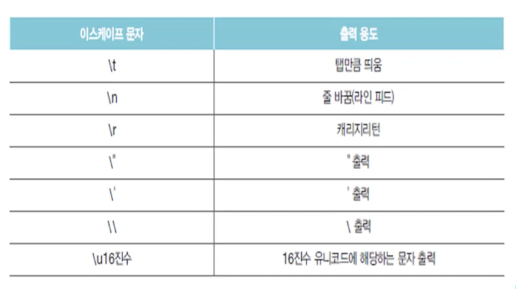 문자열 내부에 역슬래시( \ ) 가 붙은 문자를 사용하는데 이것을 이스케이프 문자라고 한다.