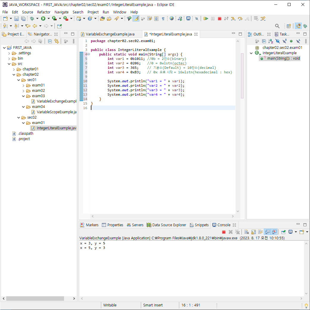 int var4 = 0xB3; // 0x 으로 시작 = 16wlstn(hexadecimal : hex)